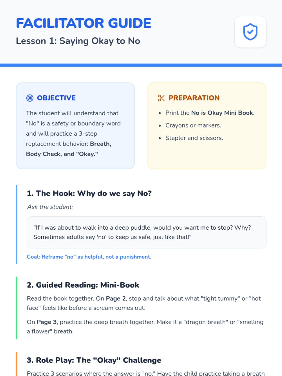 A focused lesson on helping a child understand that 'no' is a boundary, not a rejection, and teaching simple replacement behaviors for screaming.