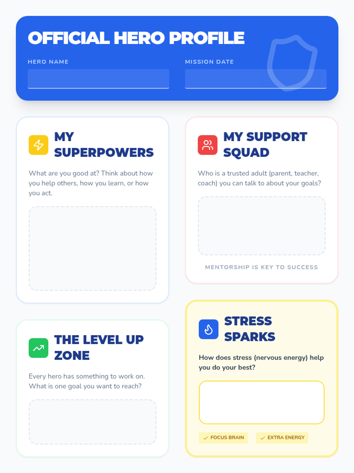 A lesson focused on helping students re-author their personal narratives by identifying their strengths, values, and 'heroic' qualities through creative art activities.