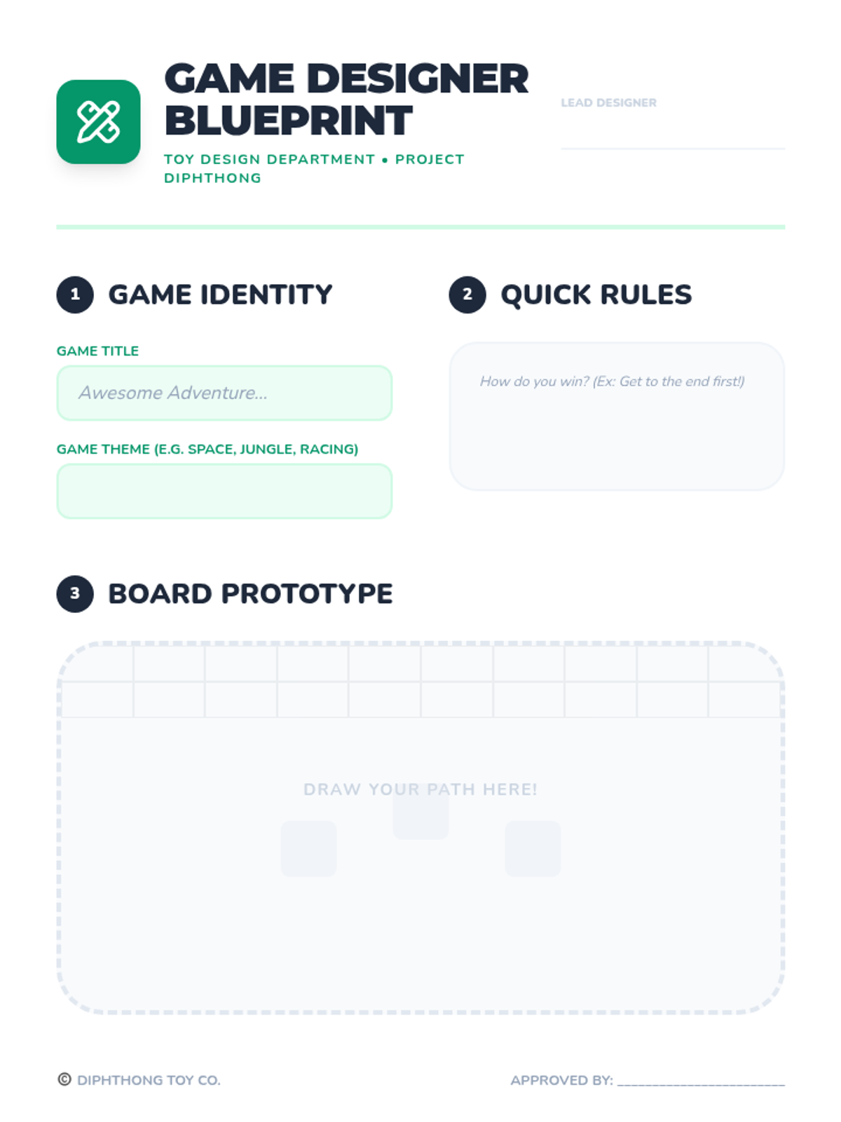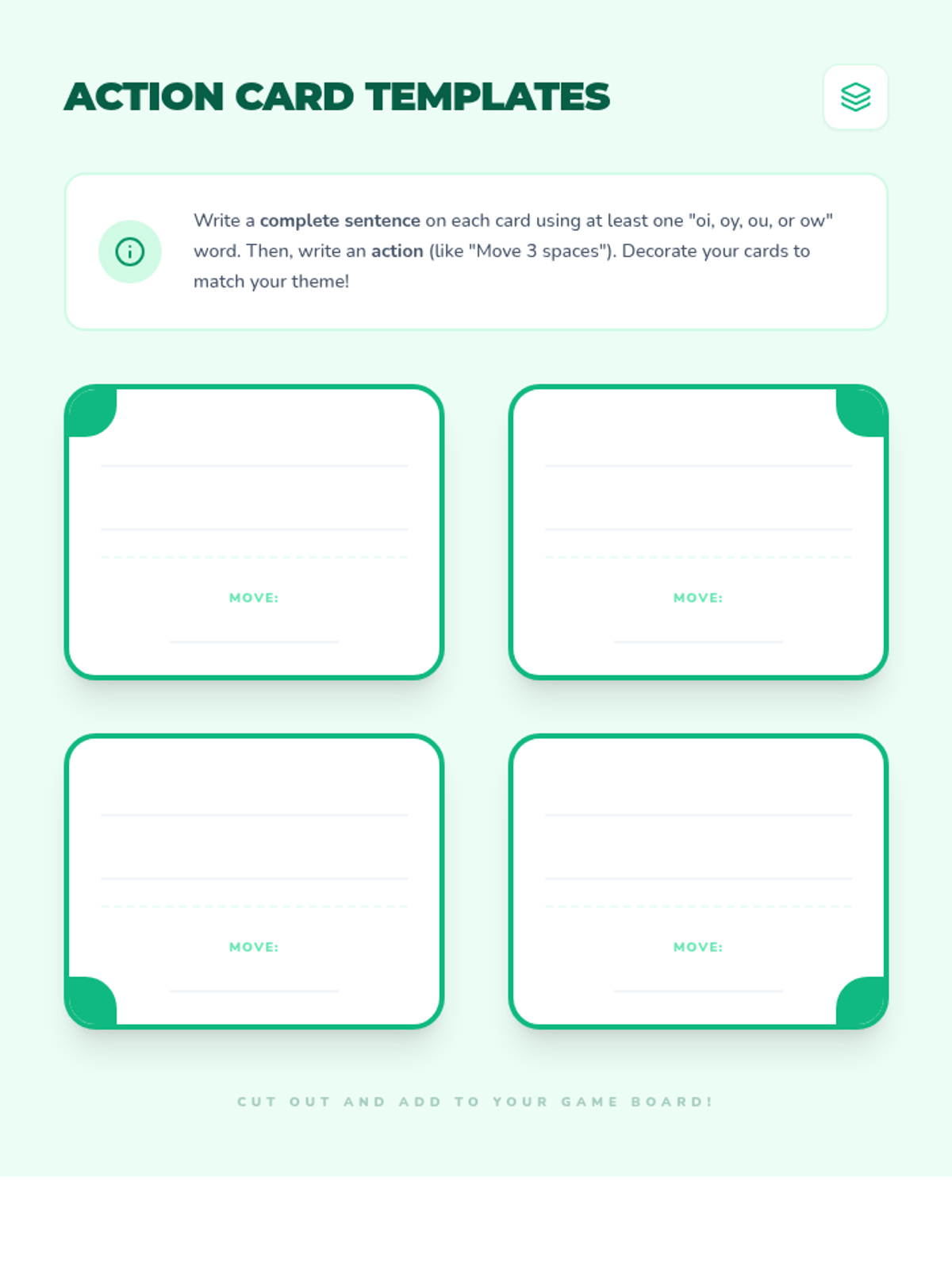 Students apply their knowledge by designing and writing game cards for their own diphthong-themed board games.
