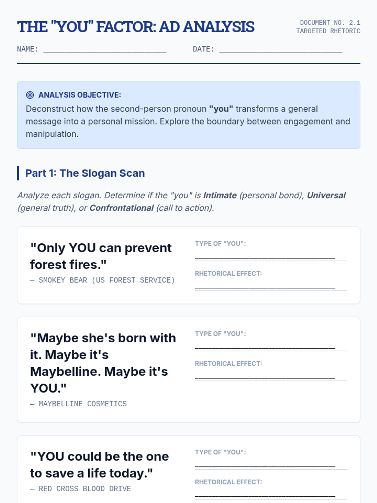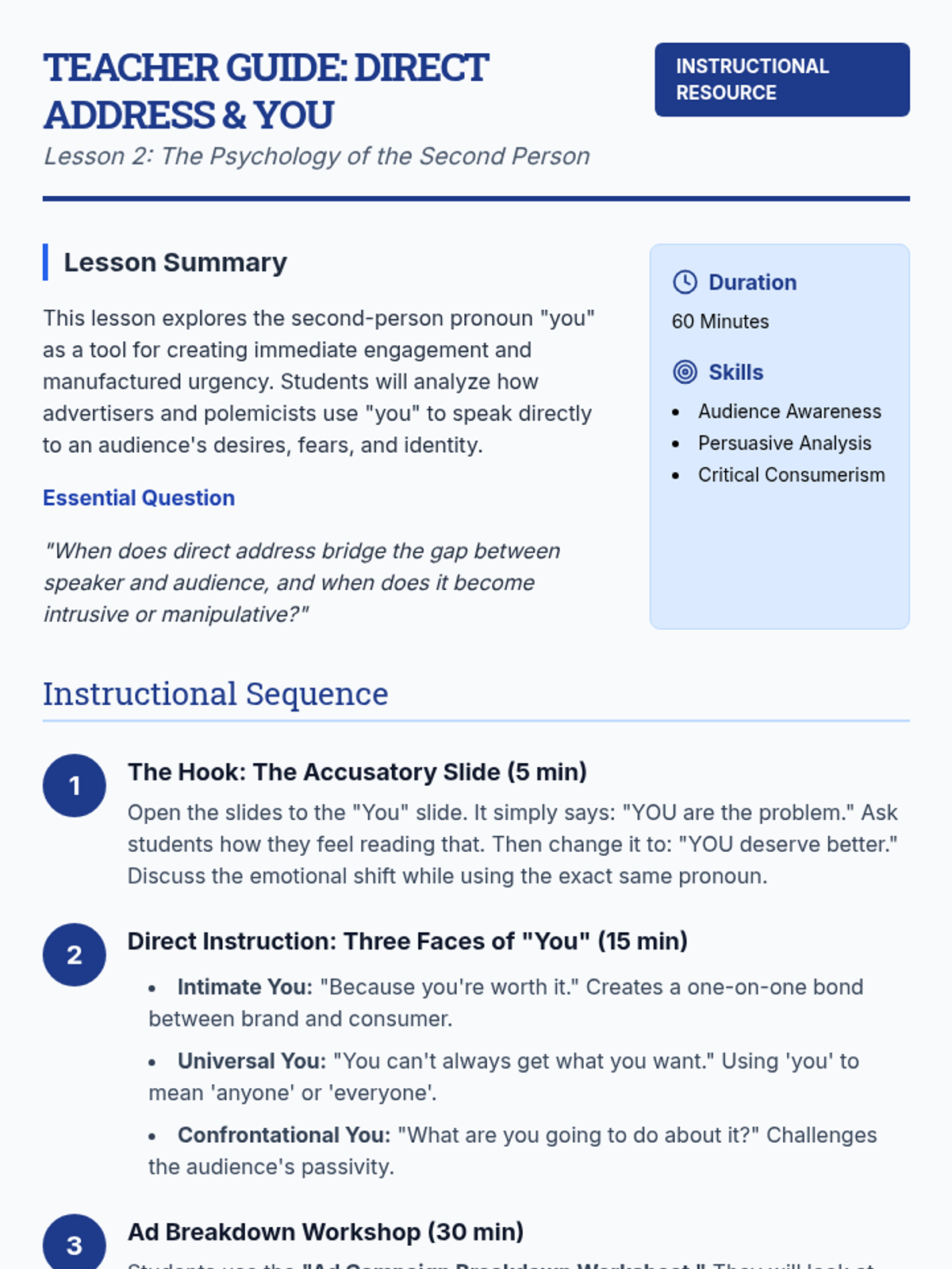 Examining the use of 'you' in persuasive writing and advertising to see how direct address can be engaging, accusatory, or informal.