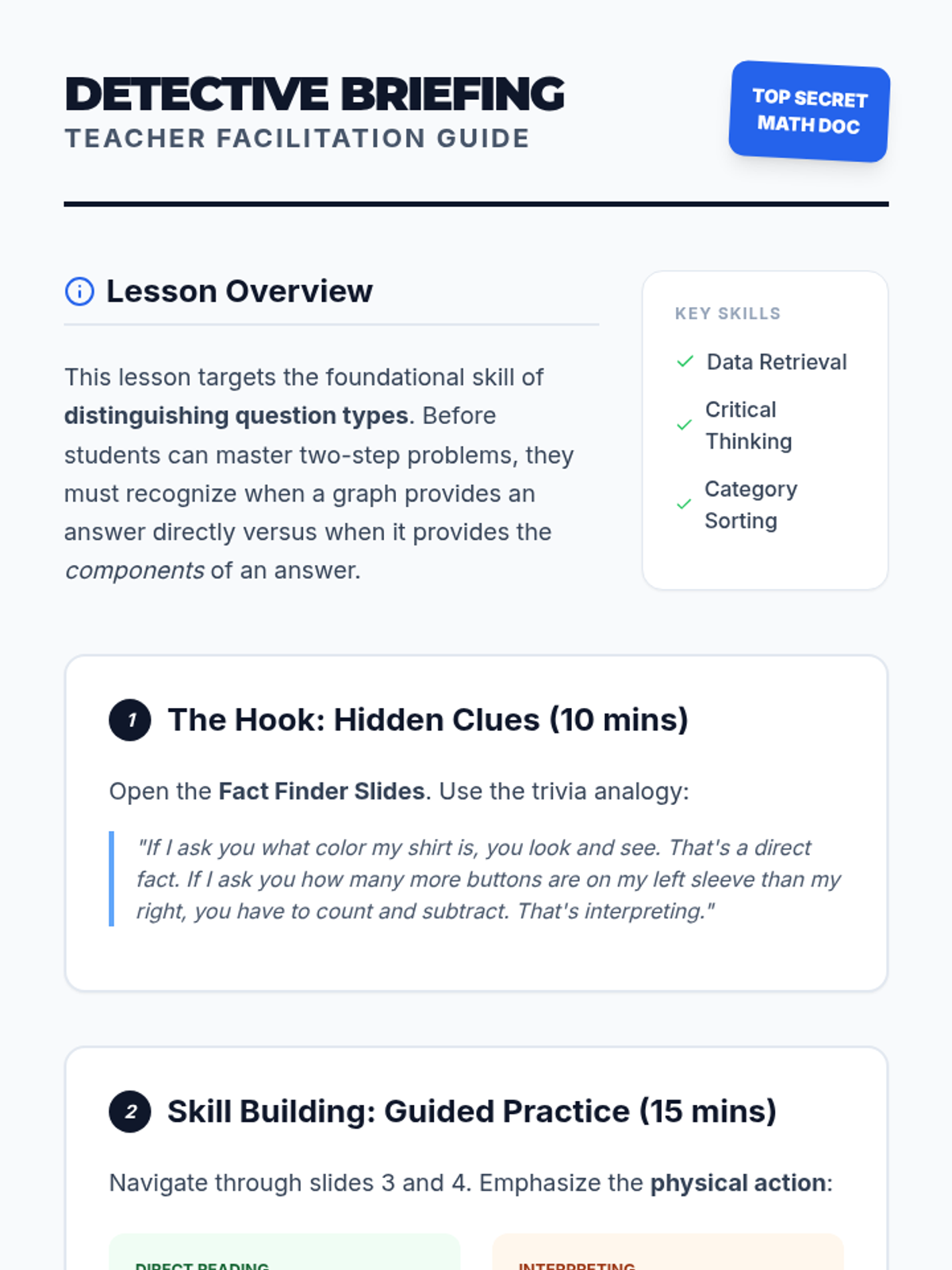 Students learn to distinguish between literal data retrieval and questions that require mathematical operations to answer.