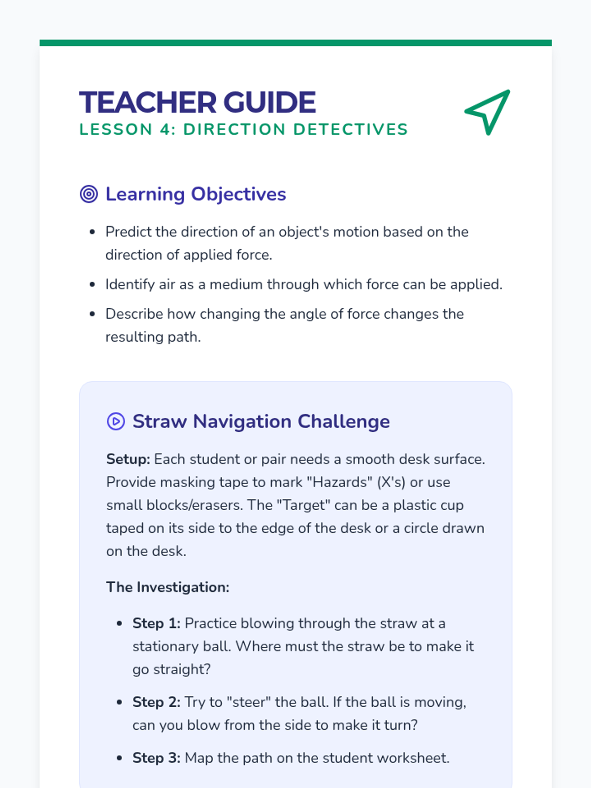 Students explore how the direction of an applied force determines the path of an object. They use straws and balls to navigate targets and map the resulting motion.