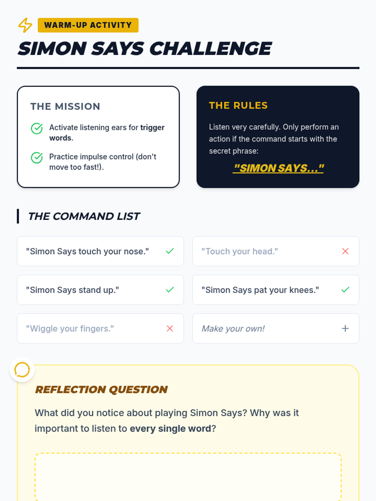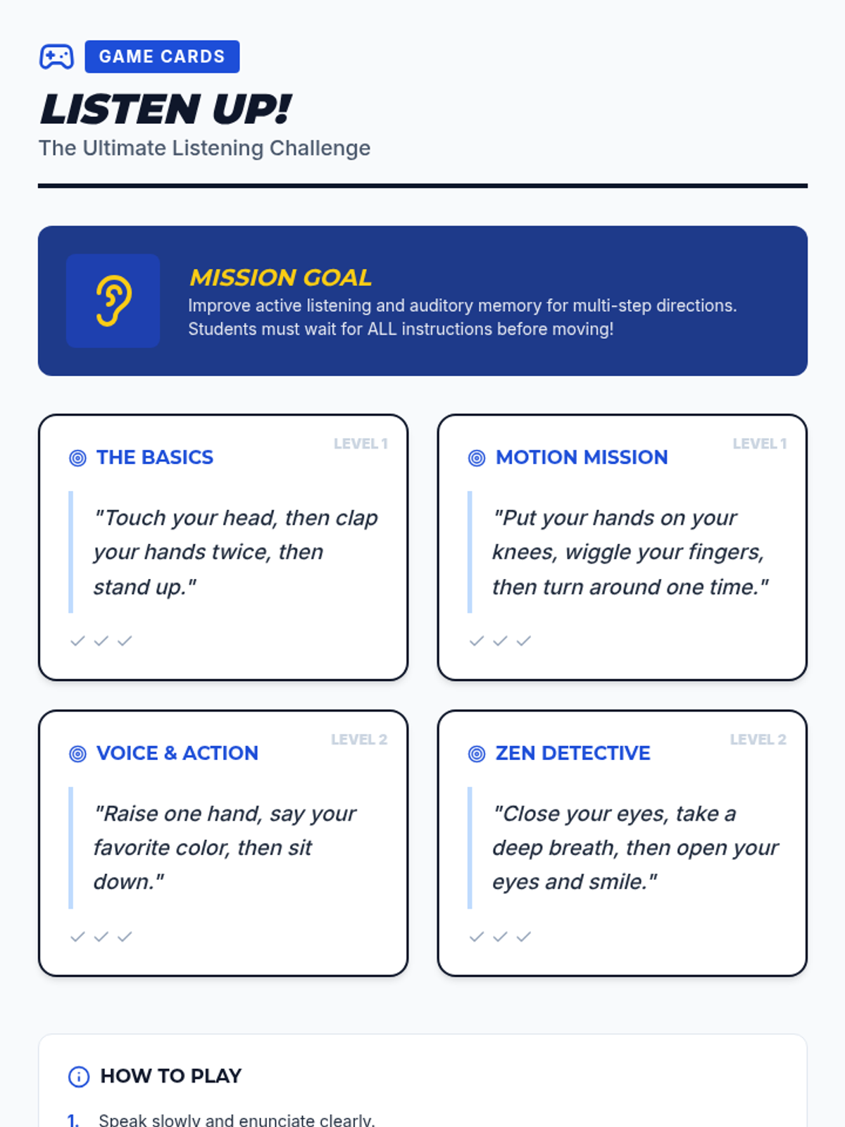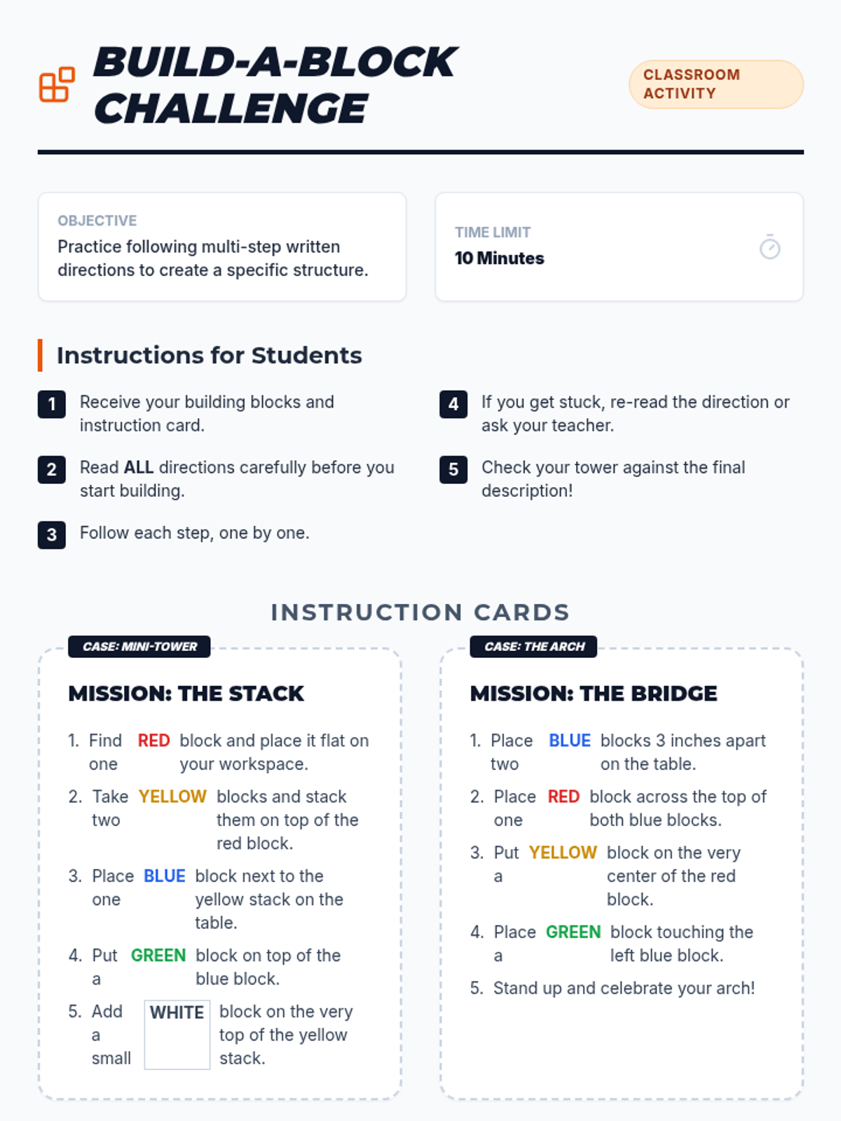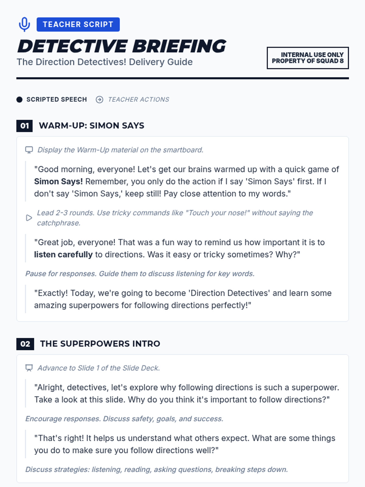 A 30-minute Tier 2 lesson for neurodivergent 8th graders to master the 'superpower' of following multi-step directions through hands-on detective-themed activities.