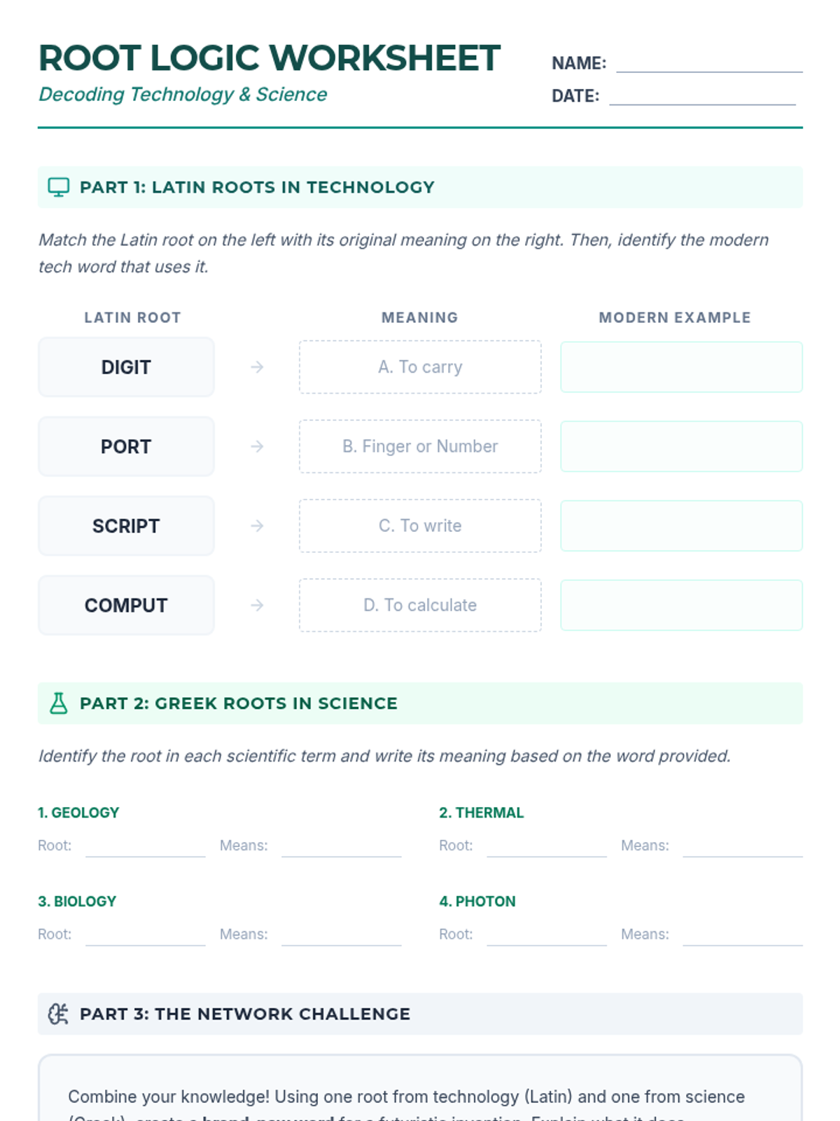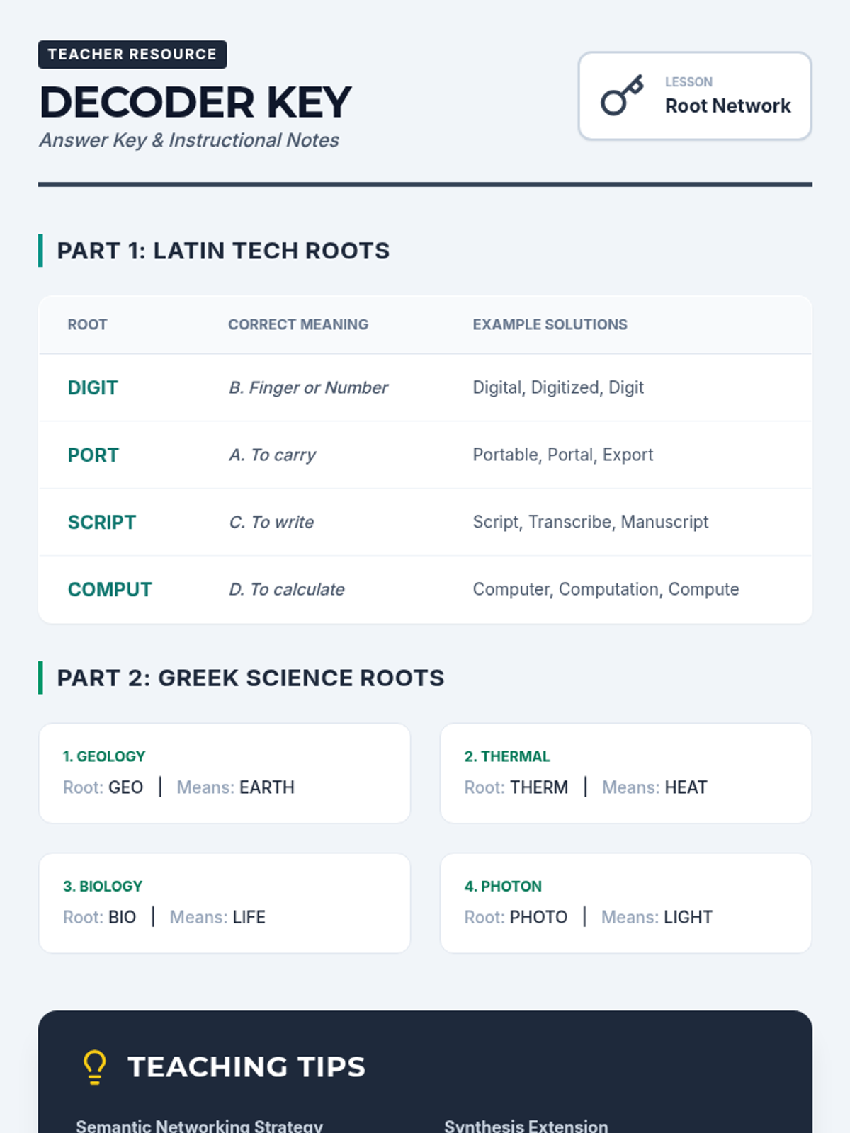 A lesson focused on building semantic networks by exploring Latin roots in technology and Greek roots in science, helping students decode modern terminology.