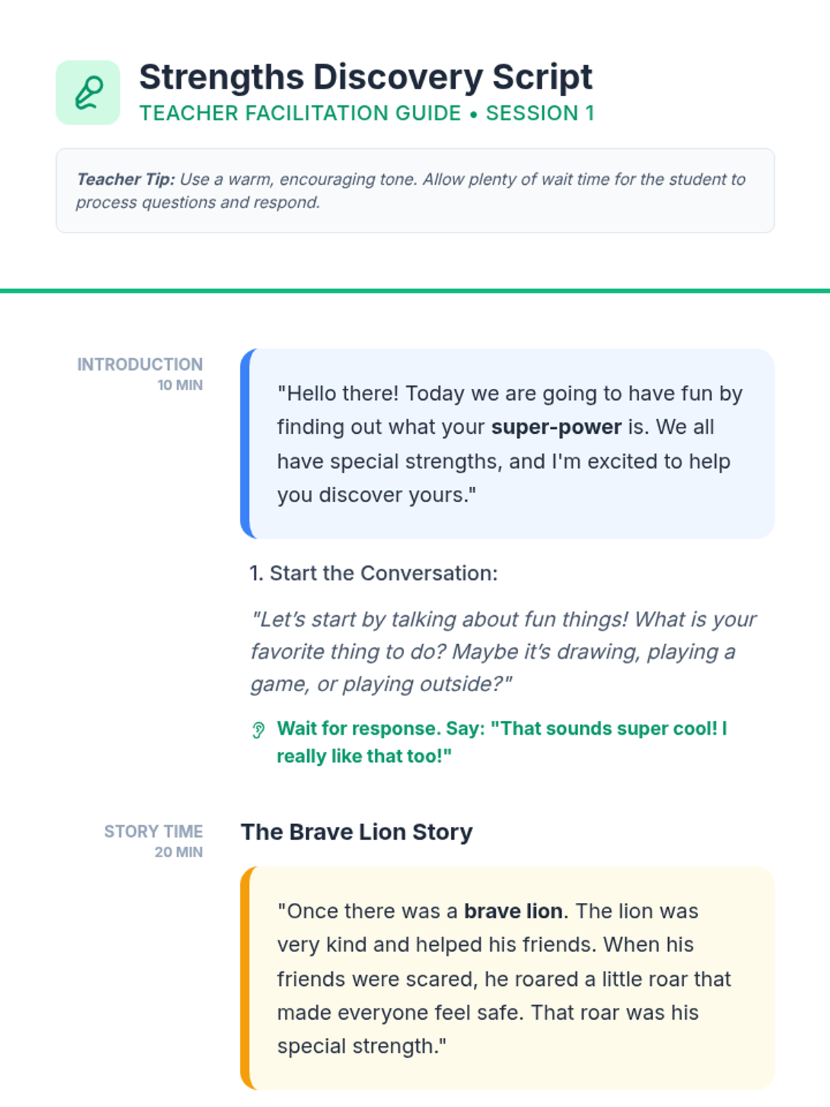 A lesson designed for small group settings to practice 'brave talking' with peers using structured activities and gamified prompts.