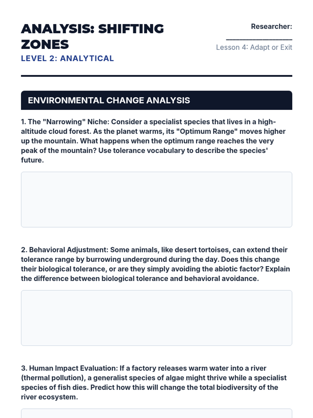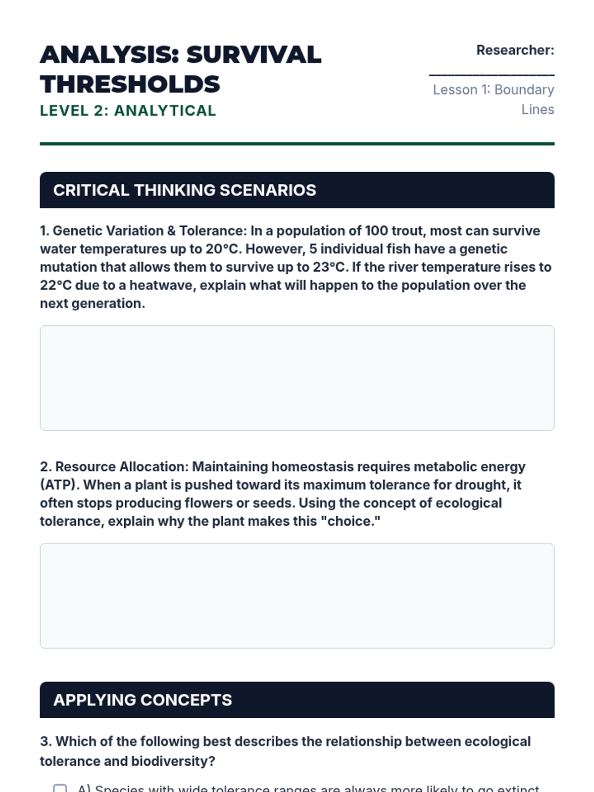 Apply tolerance concepts to real-world scenarios such as coral bleaching, invasive species, and climate-driven migration.