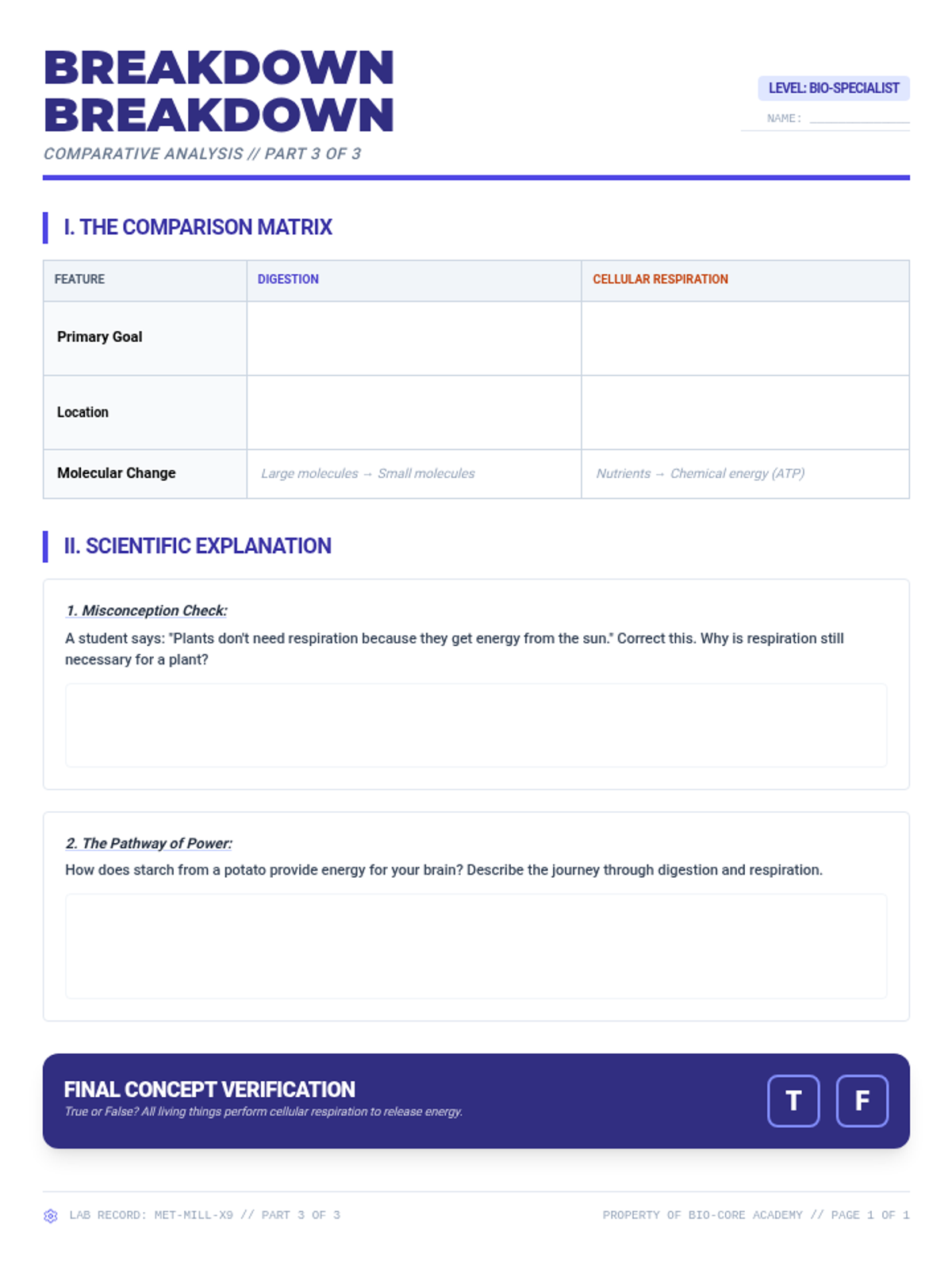 Differentiate between digestion and cellular respiration, and explain how all organisms use respiration to release energy.