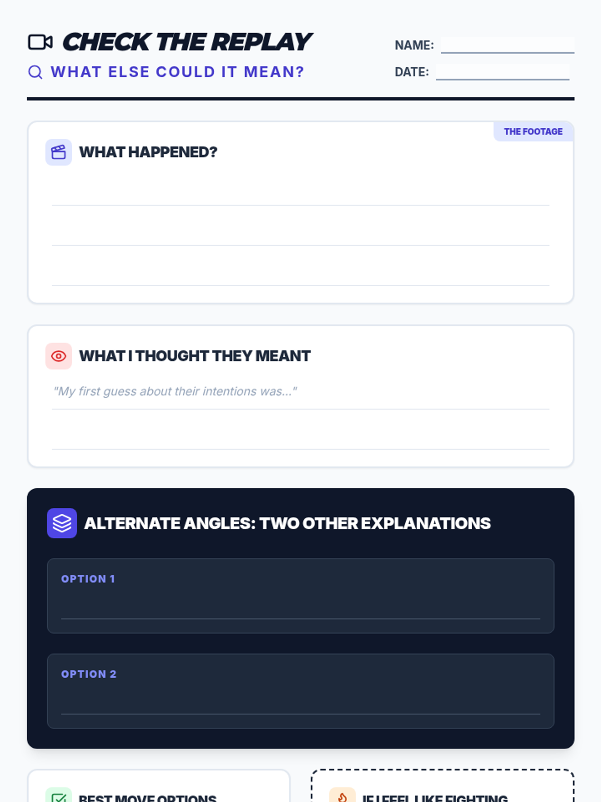 A restorative lesson designed to help students reflect on physical altercations, identify emotional triggers, and develop practical strategies for peaceful conflict resolution and emotional regulation.