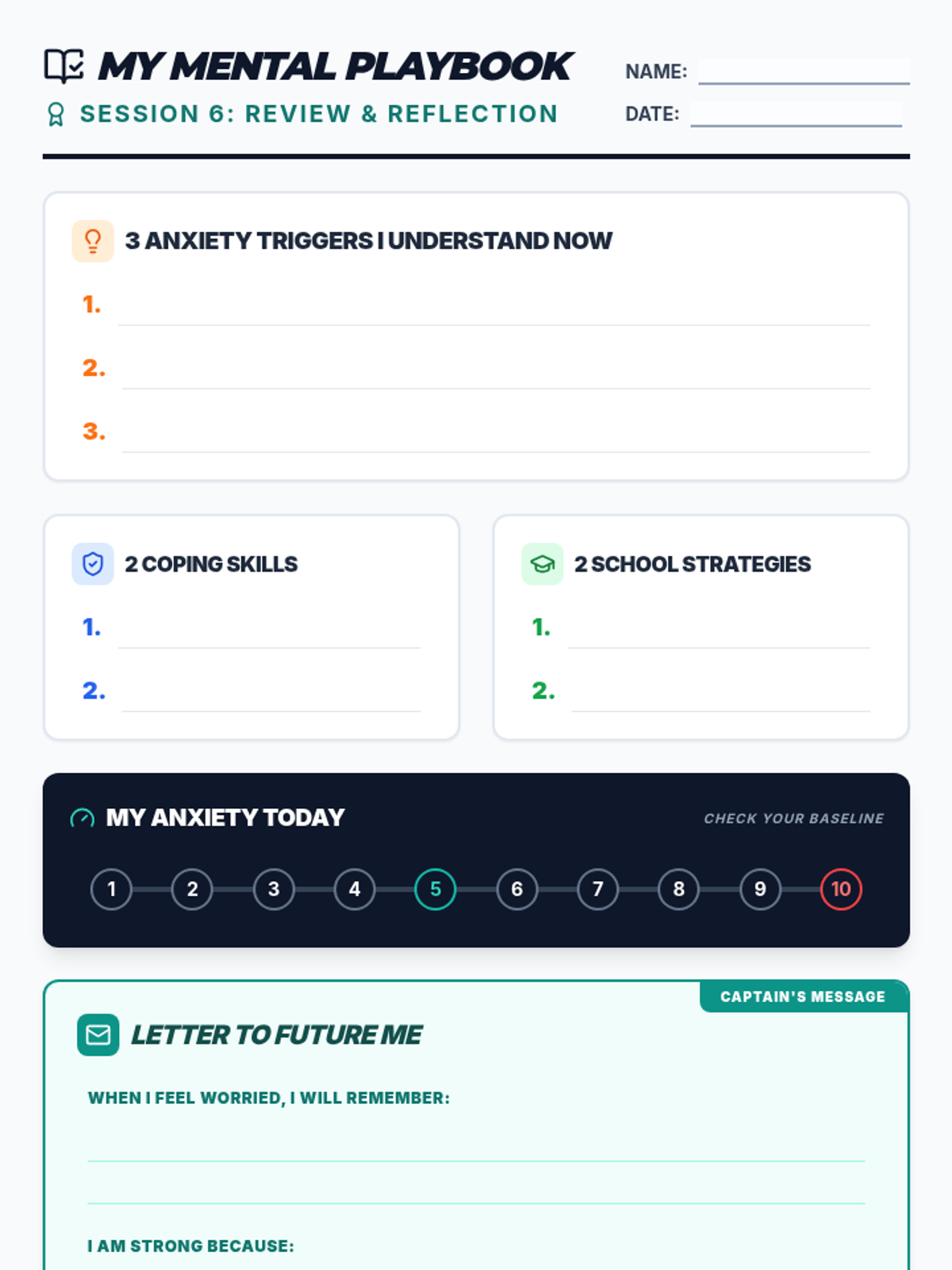 Focuses on internal reflection, helping students identify their personal strengths, triggers, and values to build a strong foundation of self.