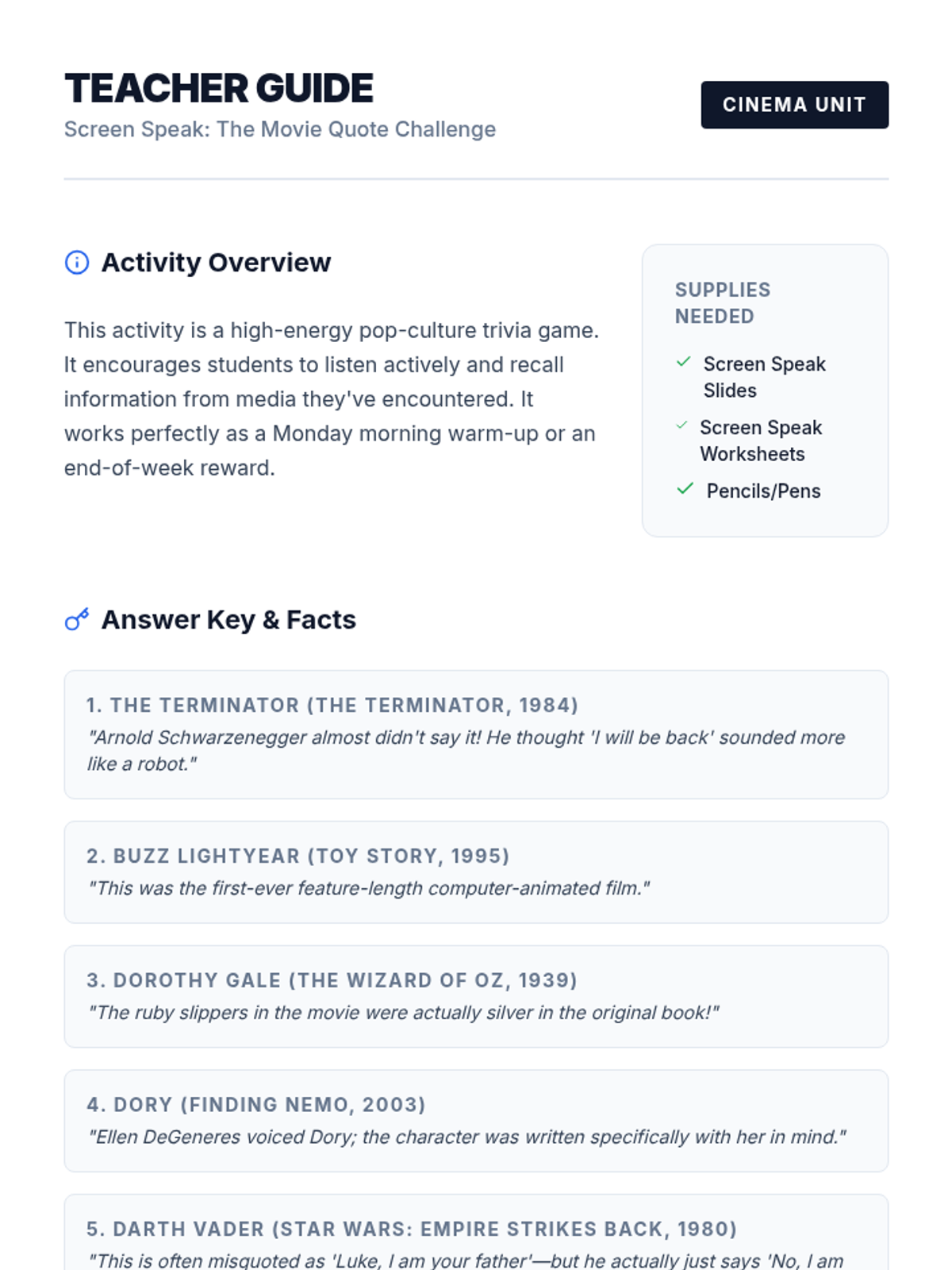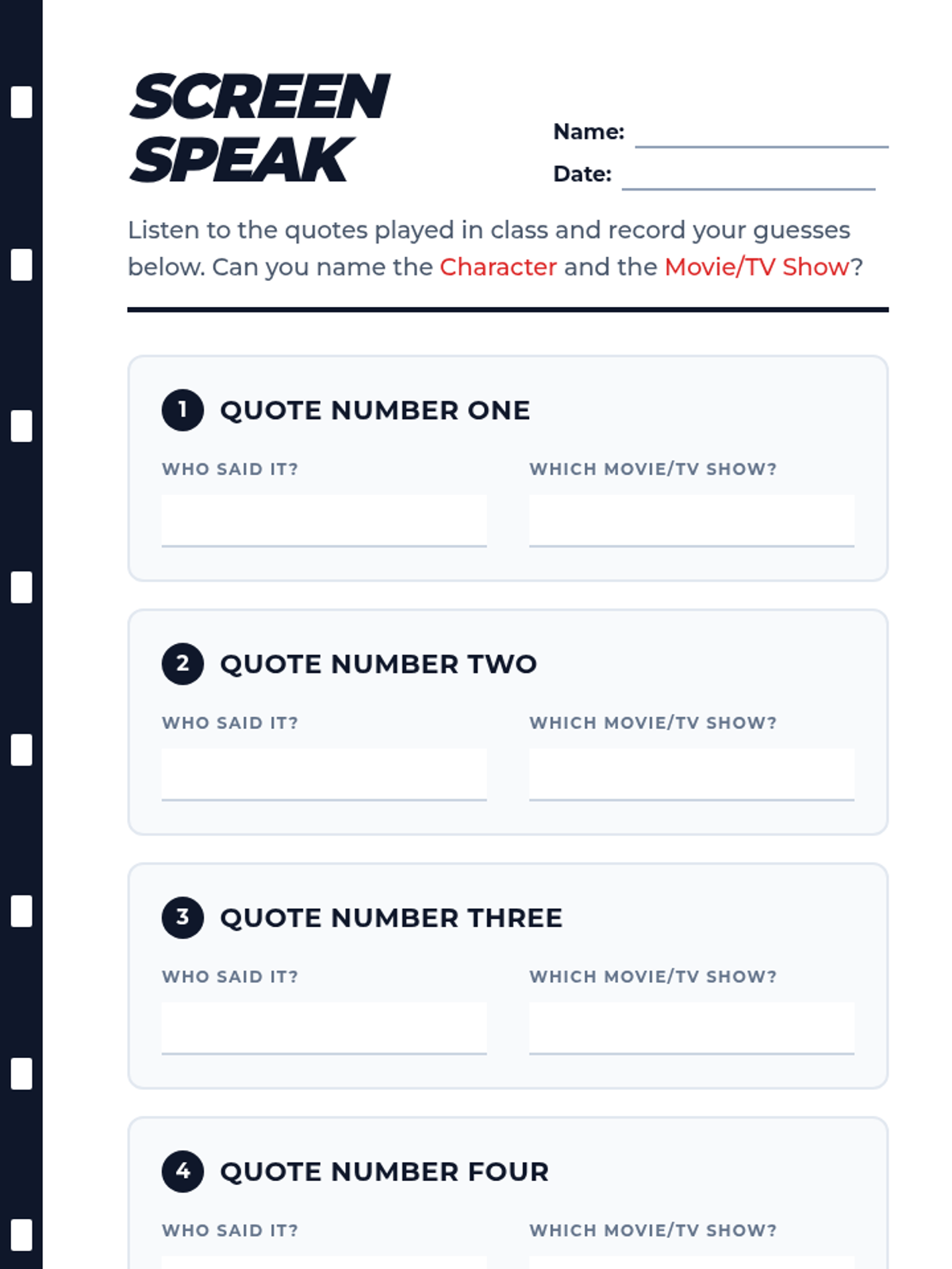 A high-energy guessing game focused on iconic quotes from movies and television, designed to test pop culture knowledge and spark discussion.
