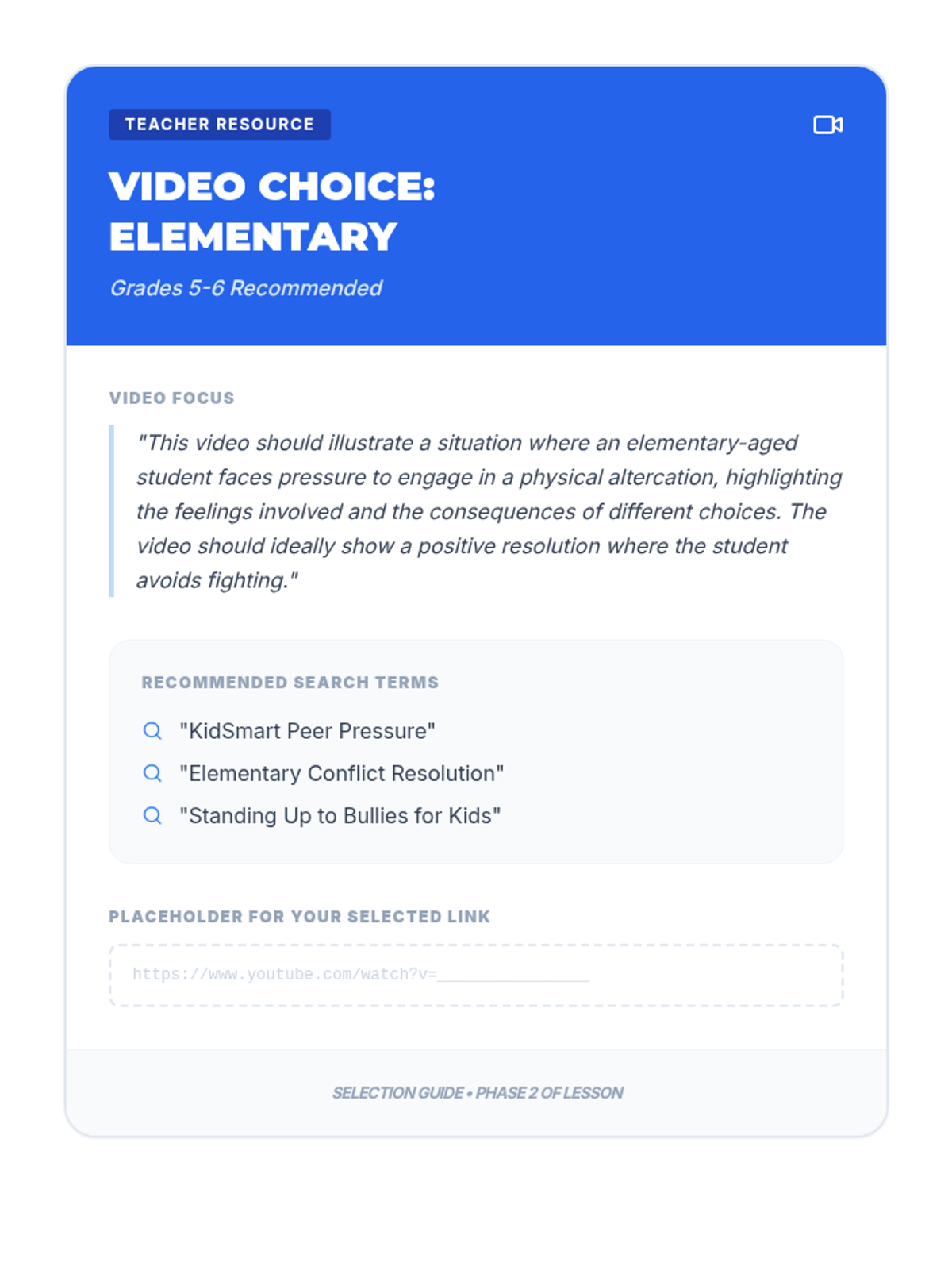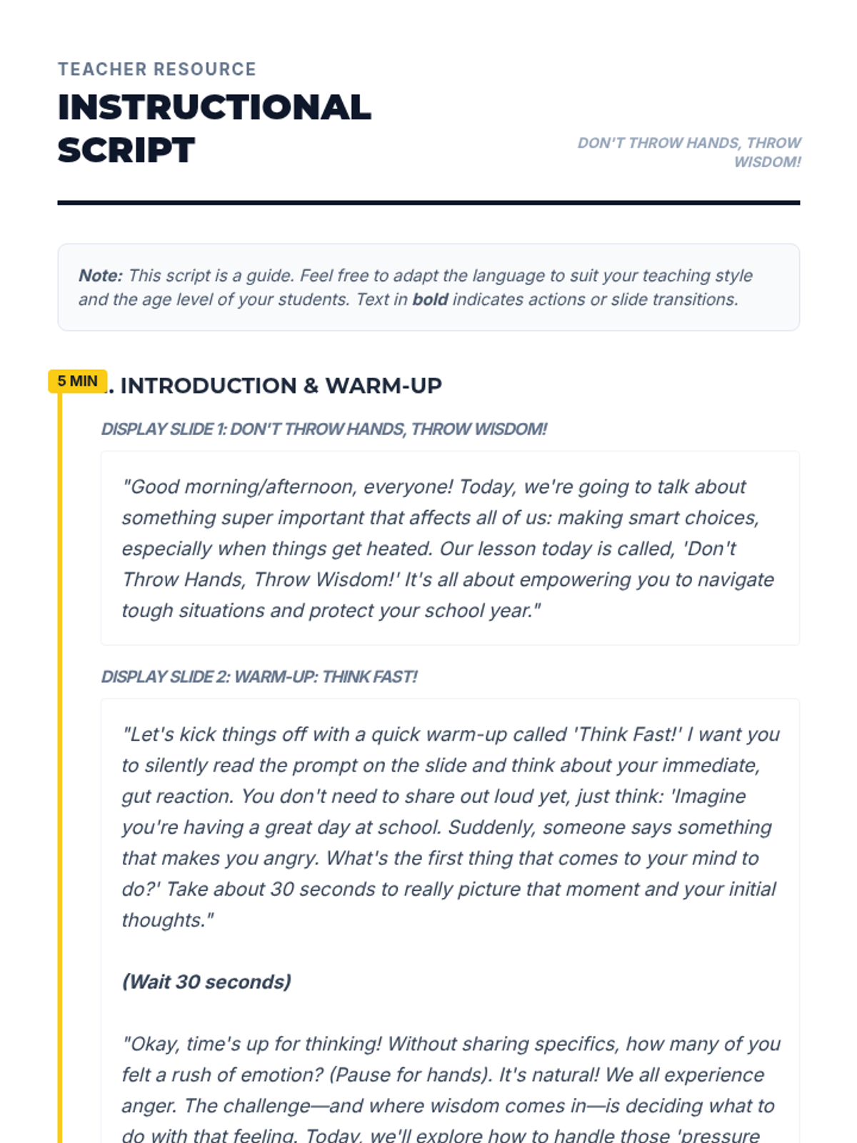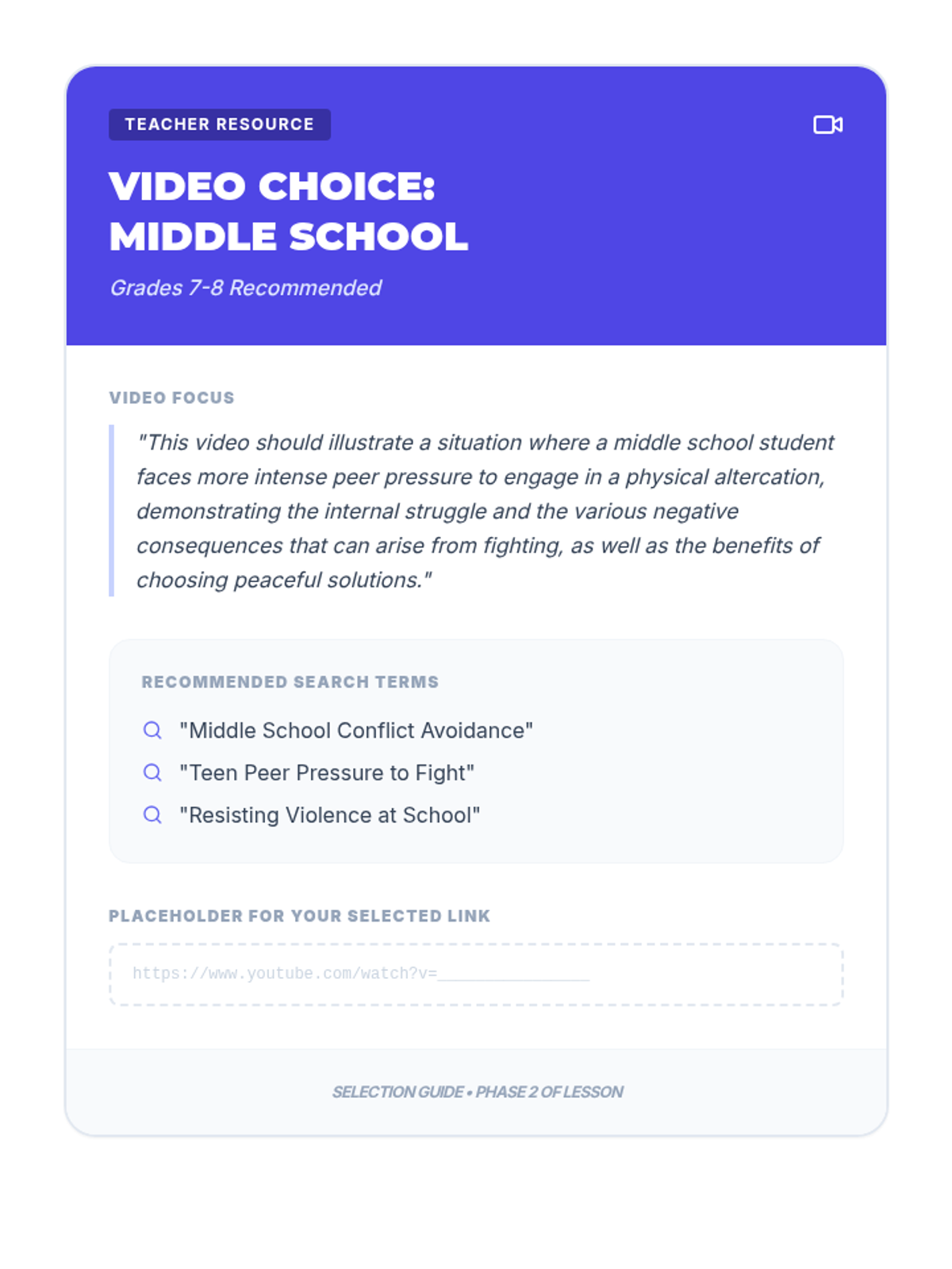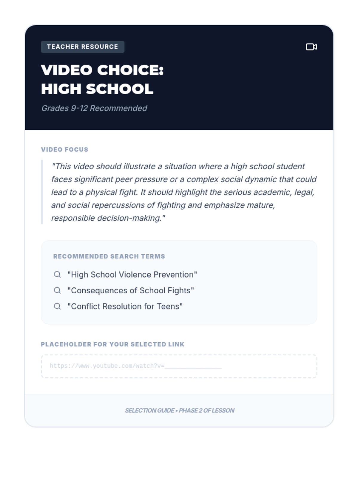 A 30-minute session for grades 5-12 exploring the consequences of school fighting and teaching practical refusal techniques. Students learn to walk away, use their voice, and find allies to protect their academic and social future.