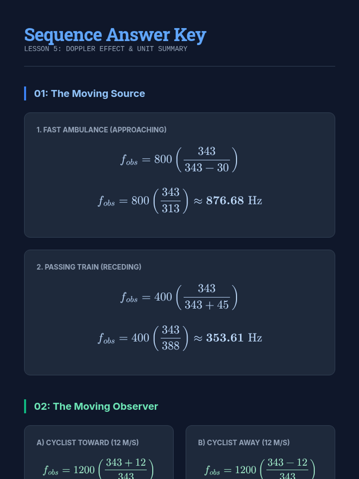 Concludes the sequence with an exploration of the Doppler Effect, frequency shifts, and the formation of shock waves/sonic booms.