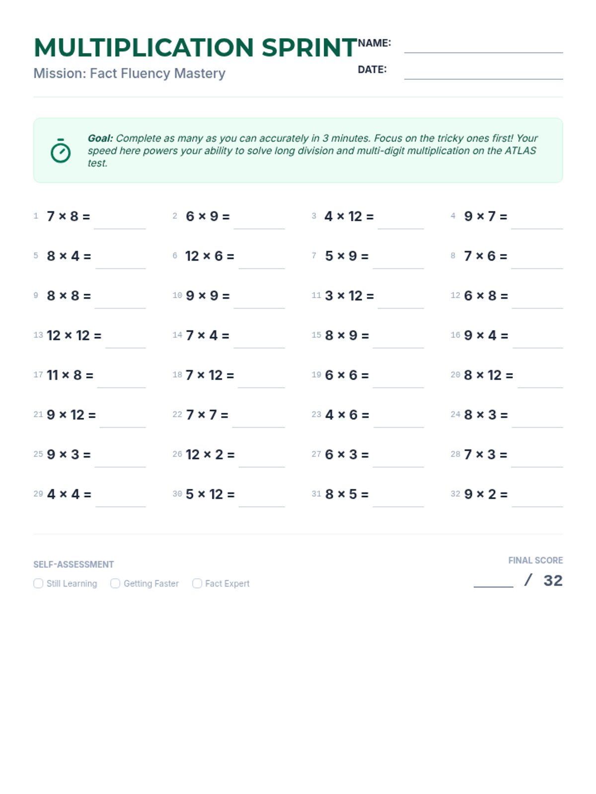 A targeted 30-minute intervention lesson framework and progress monitoring system designed to build multiplication and division fact fluency for students working below grade level.