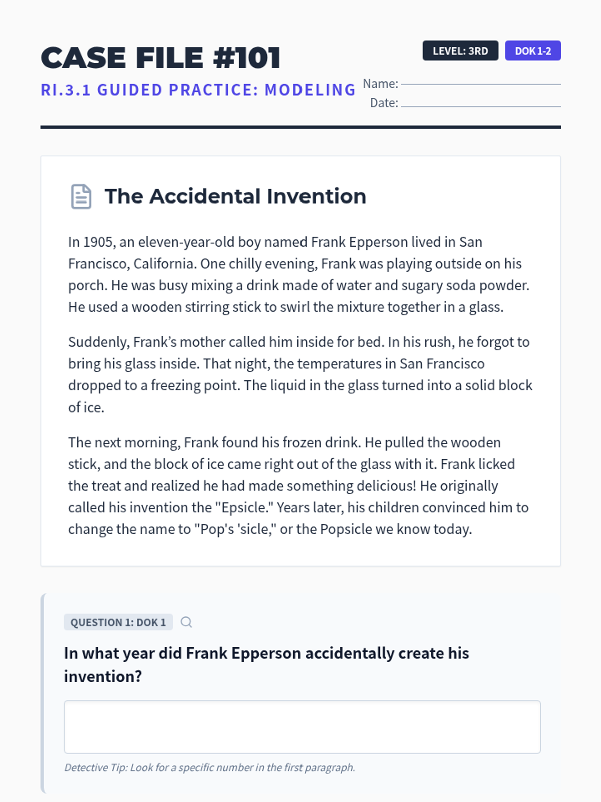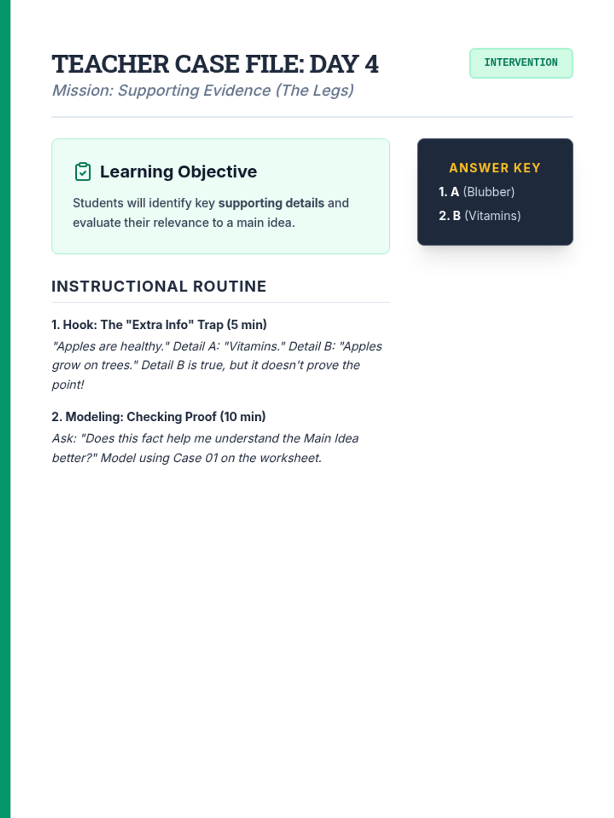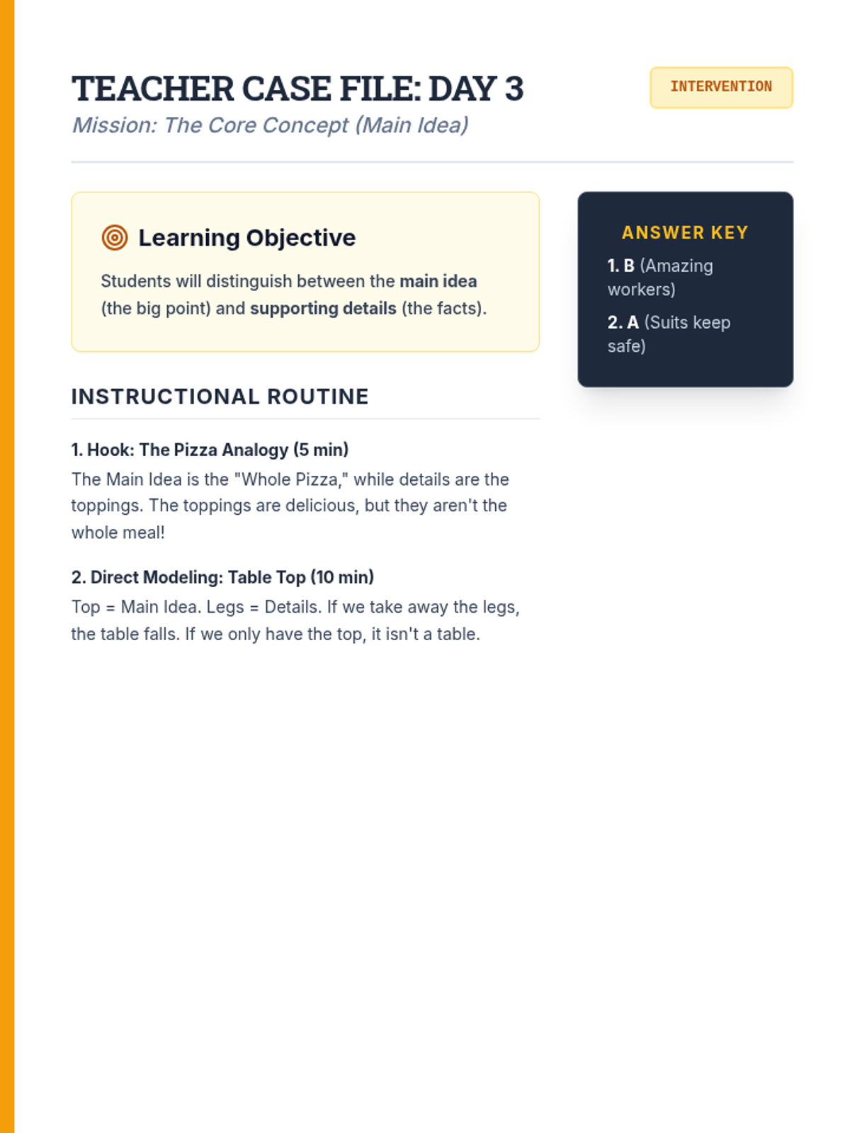Students practice identifying specific vowel teams and diphthongs within simple sentences through a detective-themed decoding activity.