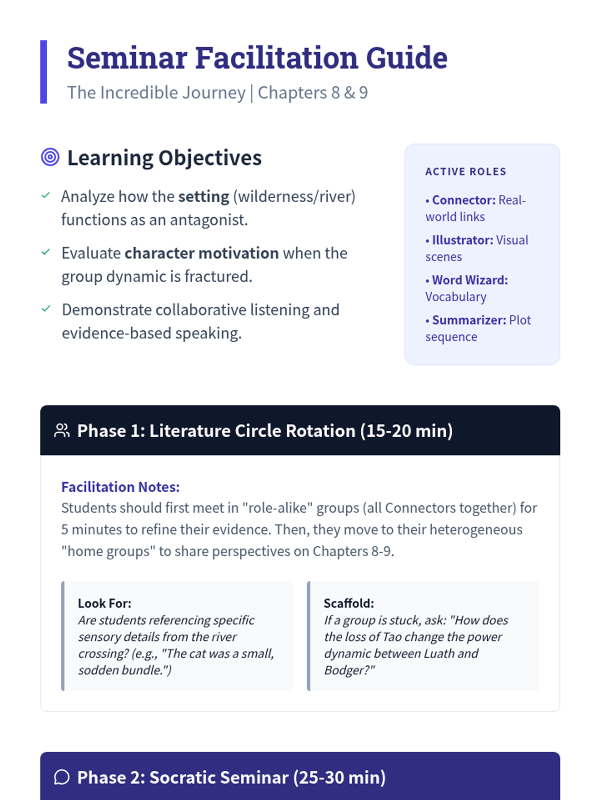 A deep dive into Sheila Burnford's classic adventure, focusing on the trio's survival through the Canadian wilderness. Students explore character motivations, analyze the atmospheric setting, and practice collaborative discussion techniques.