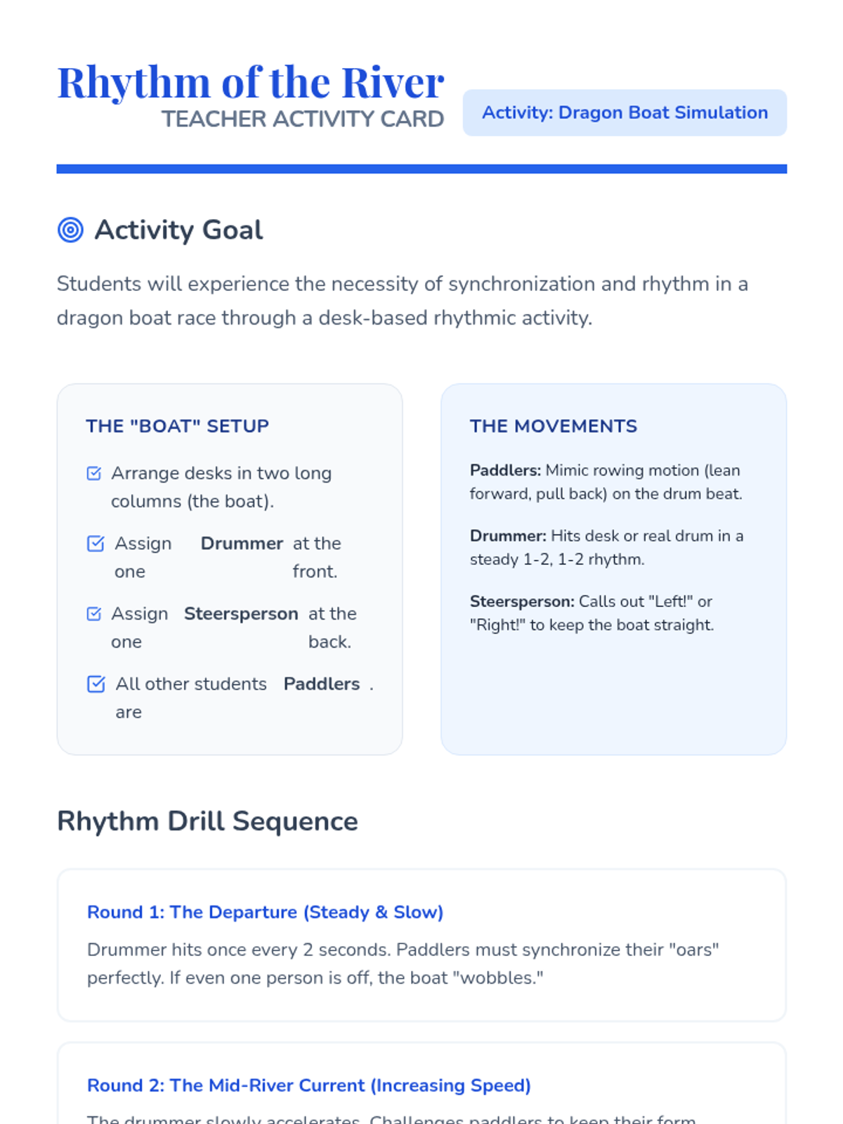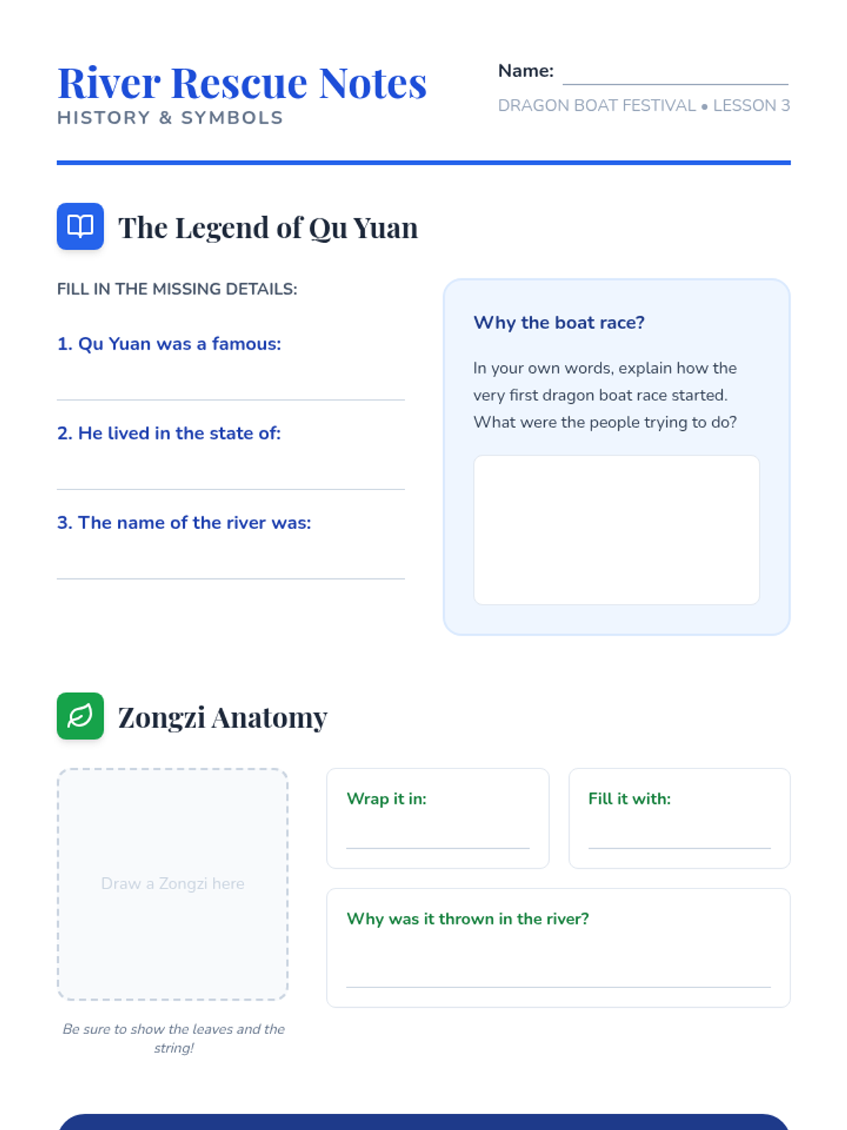 Investigate the historical background of the Dragon Boat Festival, the story of Qu Yuan, and the teamwork involved in dragon boat racing.