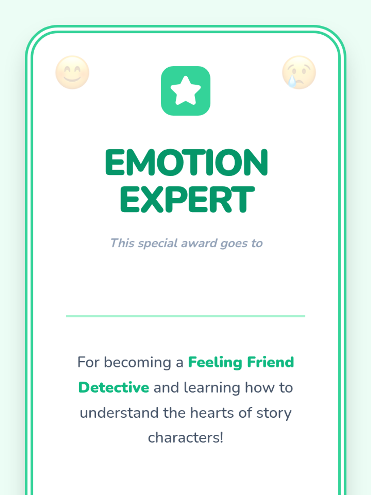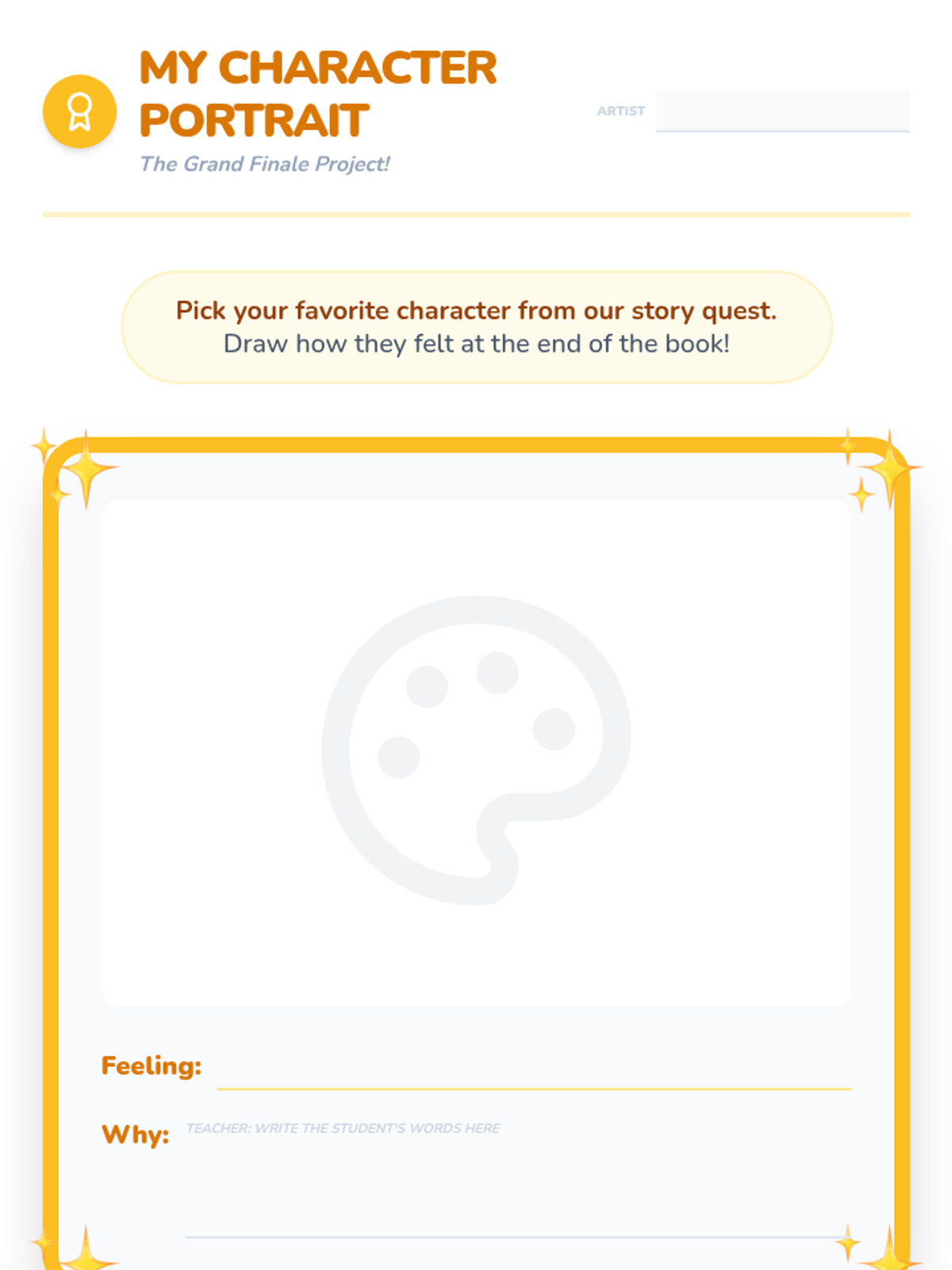Students synthesize their learning by drawing a character's emotion and dictating a description.