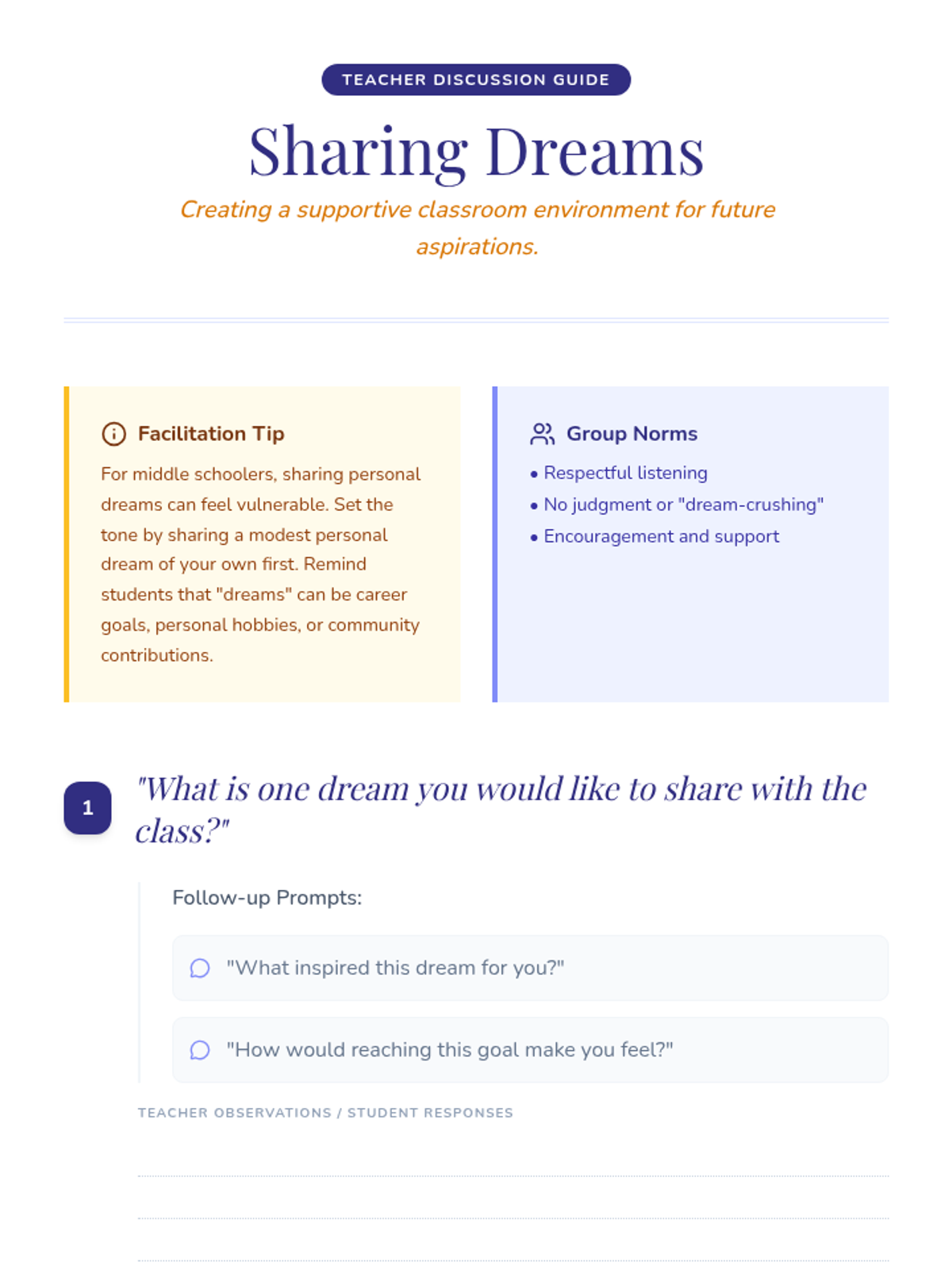 A concise 15-minute introduction to classroom norms centered on the core values of Respect, Integrity, and Safety. Students will define these values and commit to a shared culture of success.
