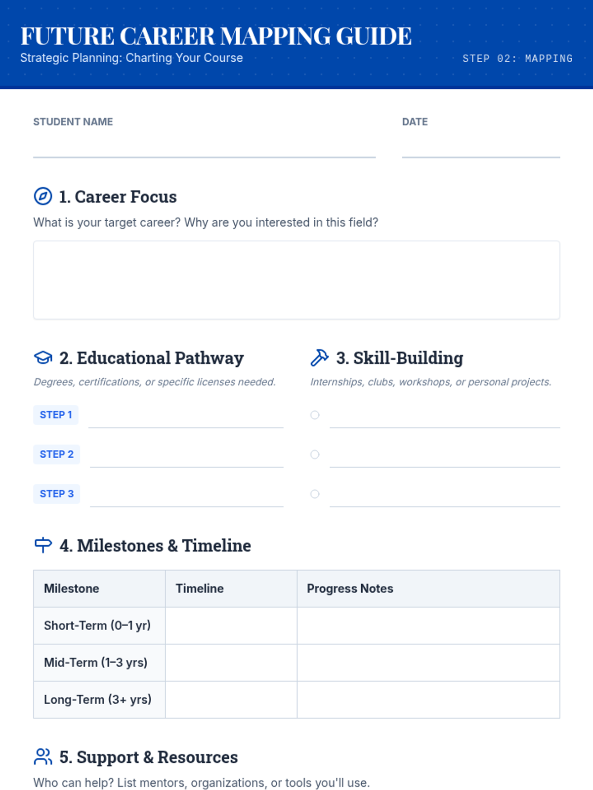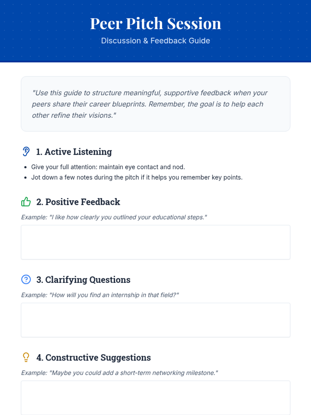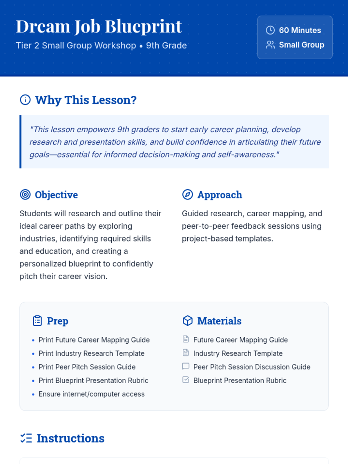 A 60-minute Tier 2 workshop for 9th graders focused on exploring, researching, and mapping out a personalized career path through project-based research and peer pitching.