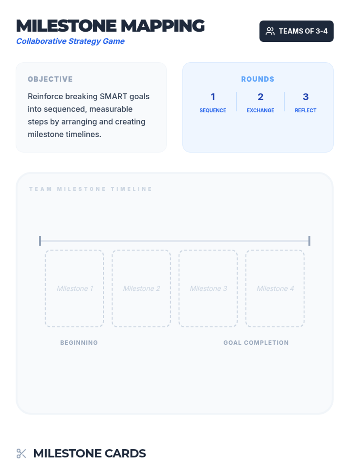 Practical team-based synergy challenges to apply collaborative problem-solving skills.