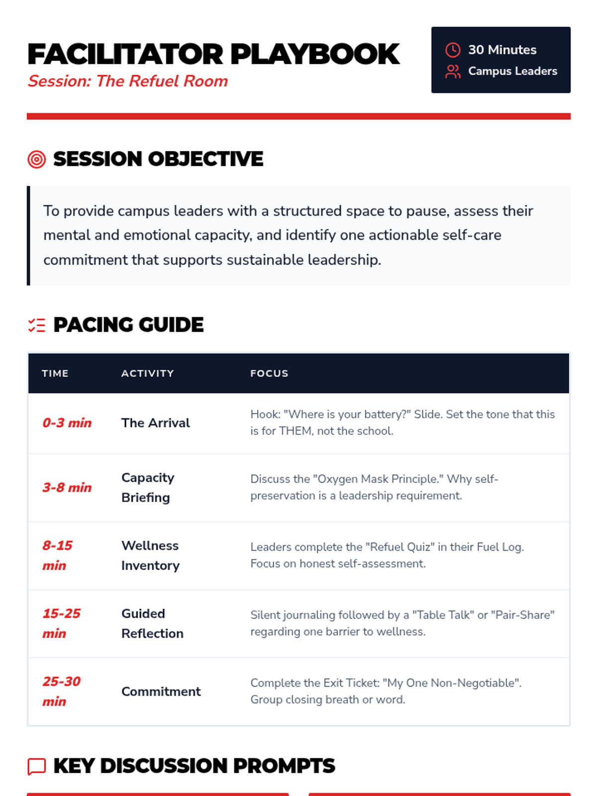 A 30-minute interactive session for campus leaders to assess their current wellness, engage in reflection, and commit to sustainable self-care practices.