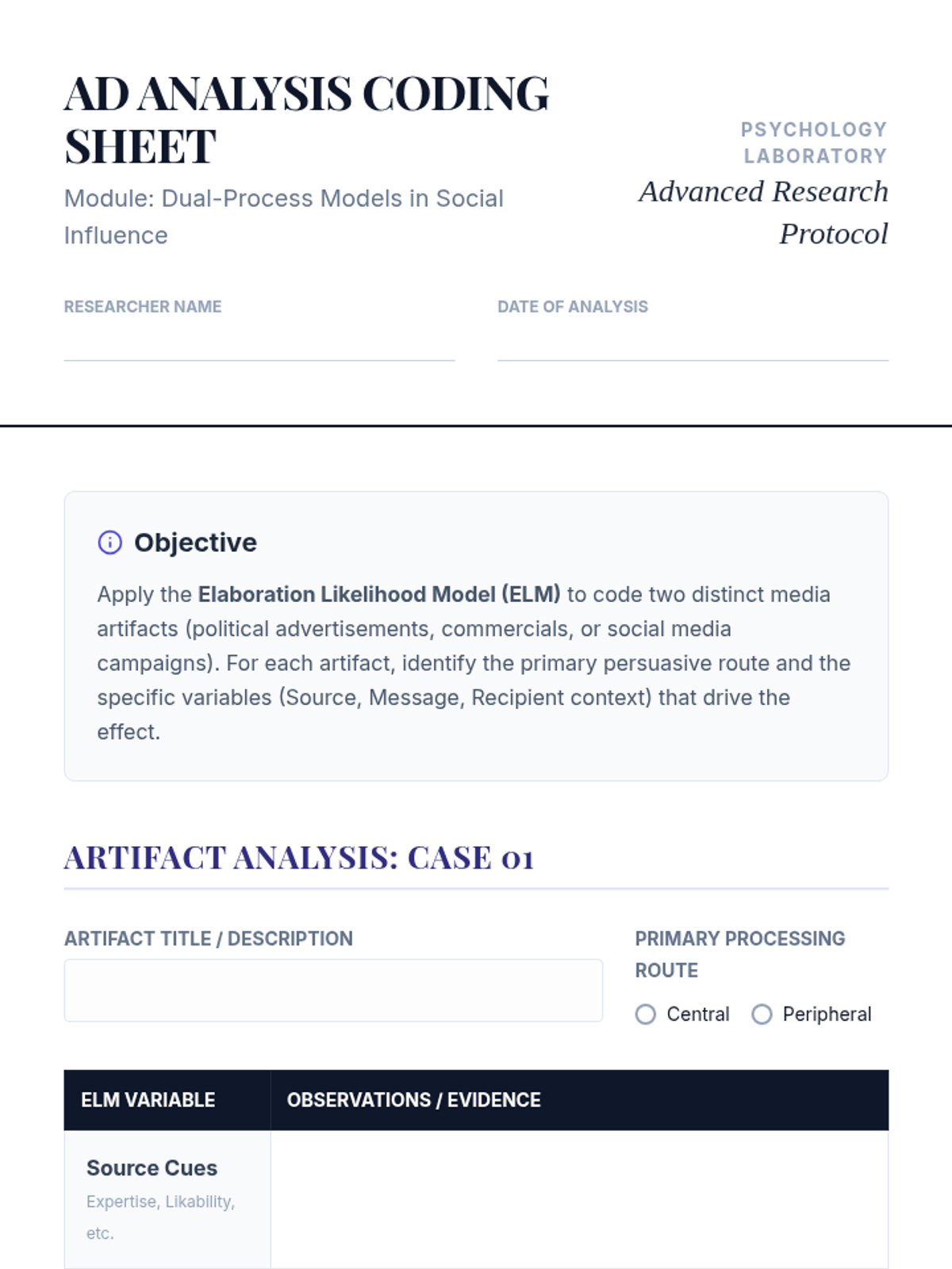 Exploration of the Elaboration Likelihood Model (ELM) and Heuristic-Systematic Model (HSM) to understand central vs. peripheral processing routes in persuasion.