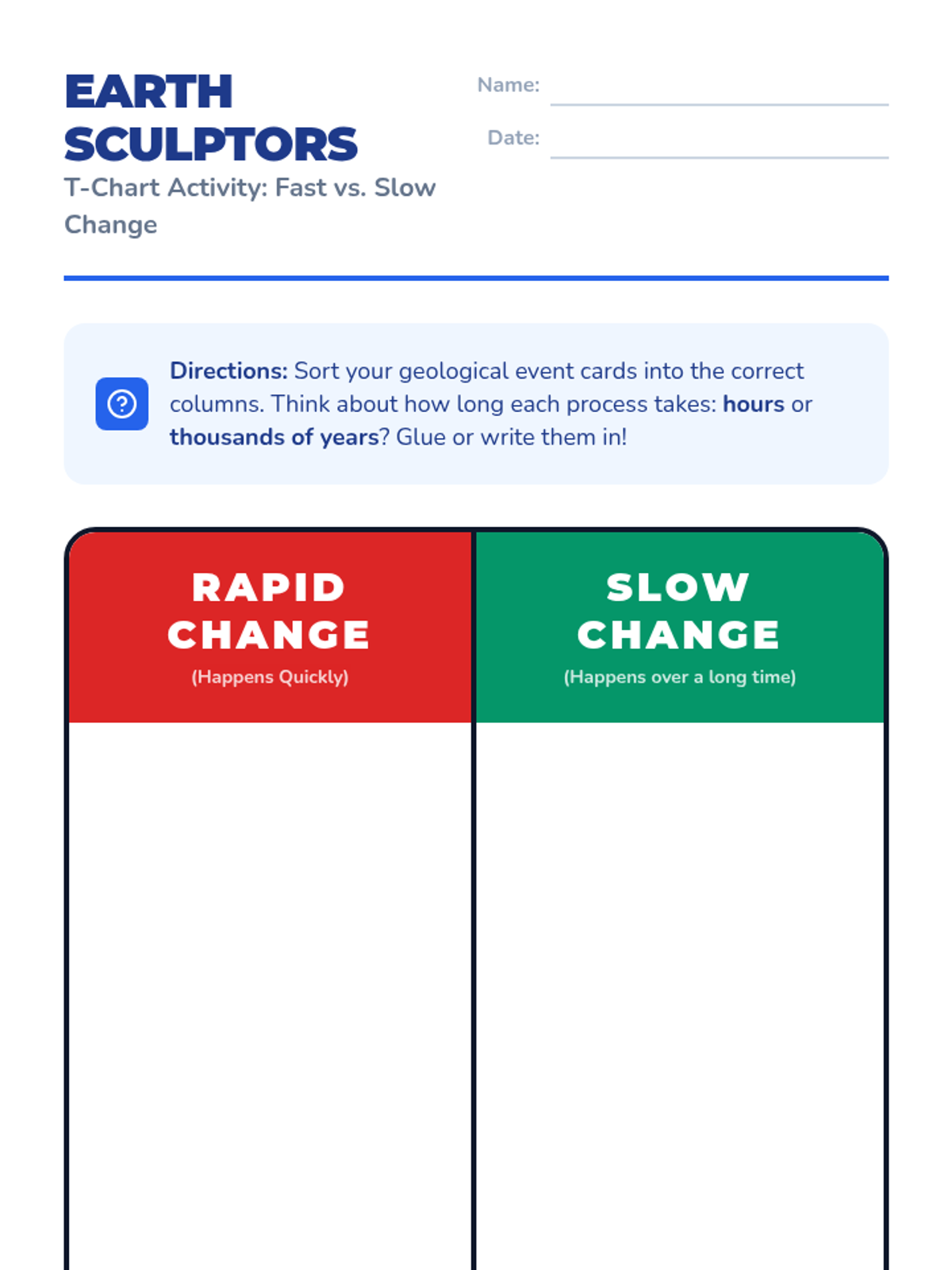 Students become geological detectives to investigate how rocks change over time through heat, pressure, and erosion, culminating in a mystery-solving identification challenge.