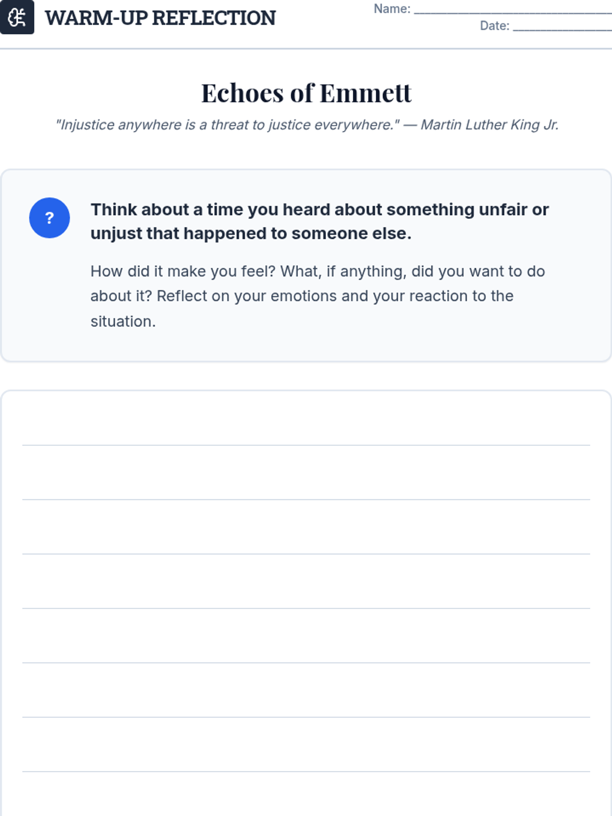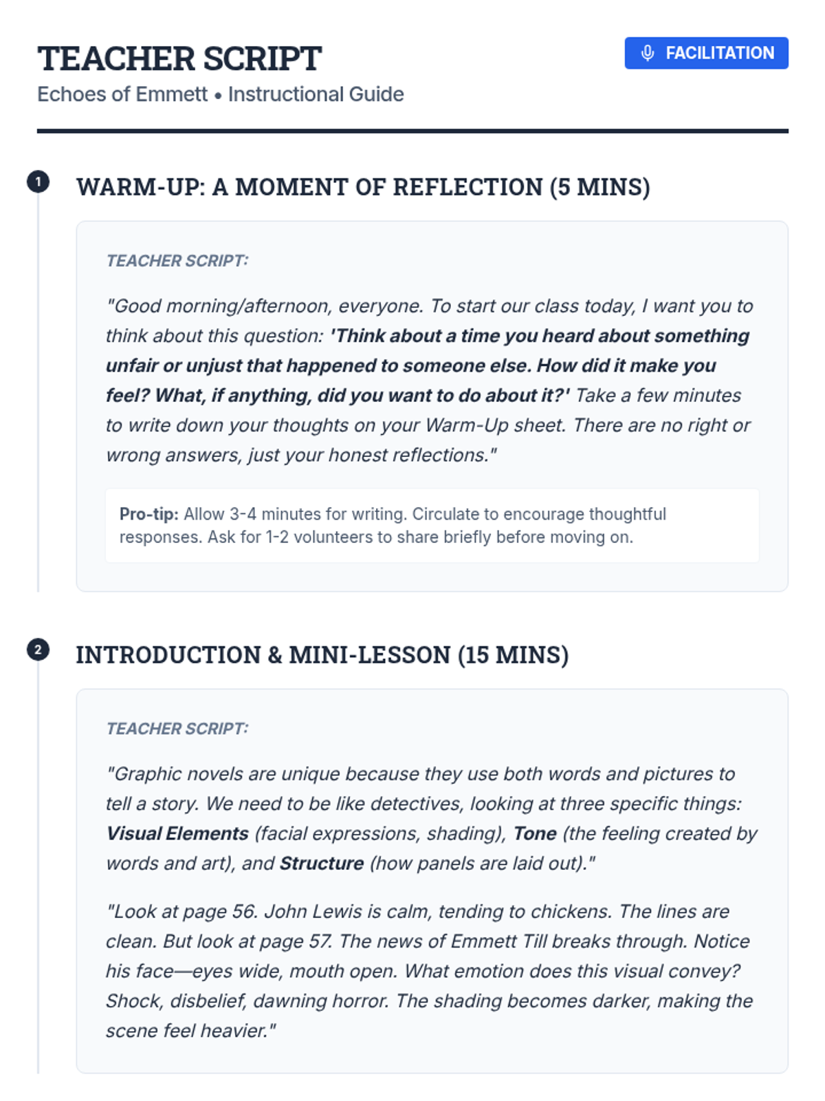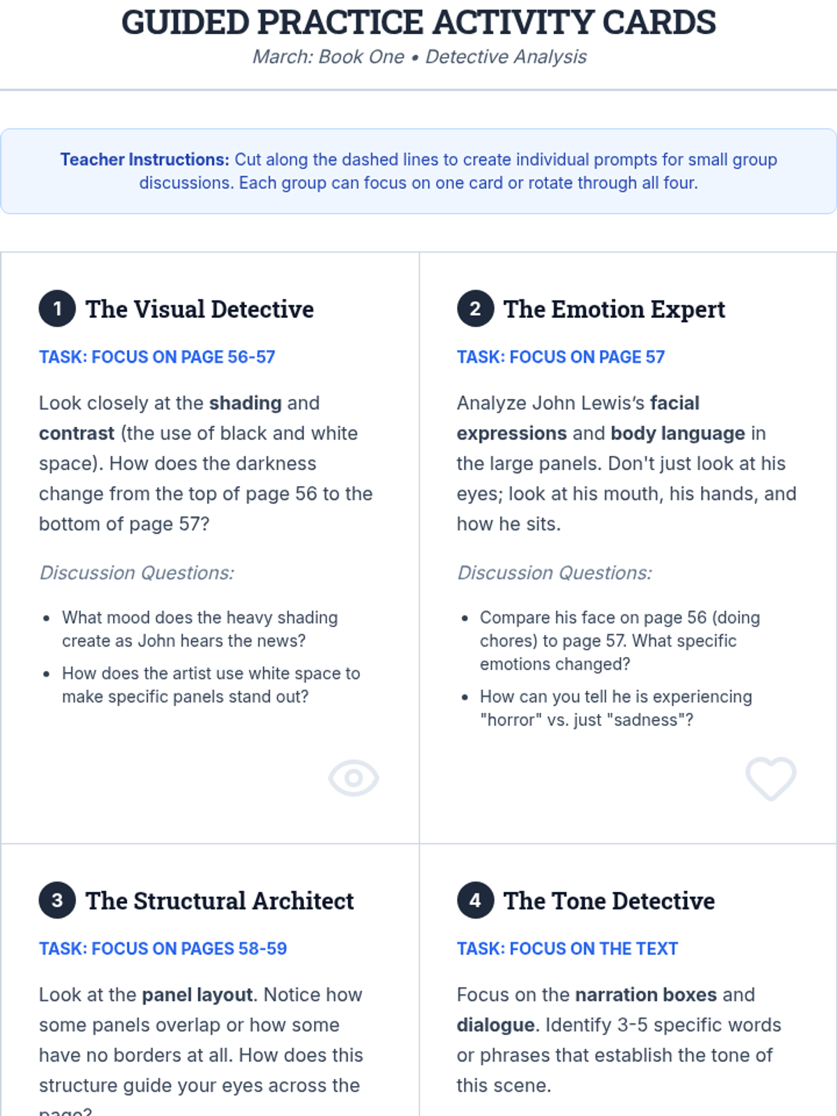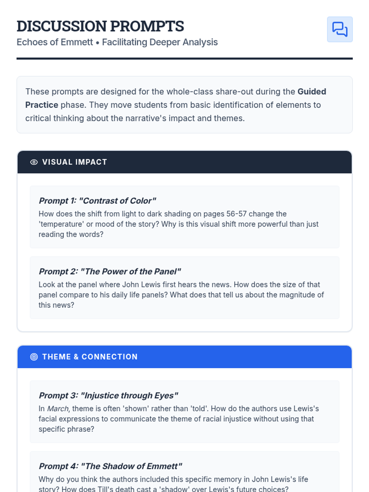 A 50-minute 6th-grade ELA lesson analyzing visual elements, tone, and structure in 'March: Book One', focusing on the profound impact of Emmett Till's death on John Lewis.