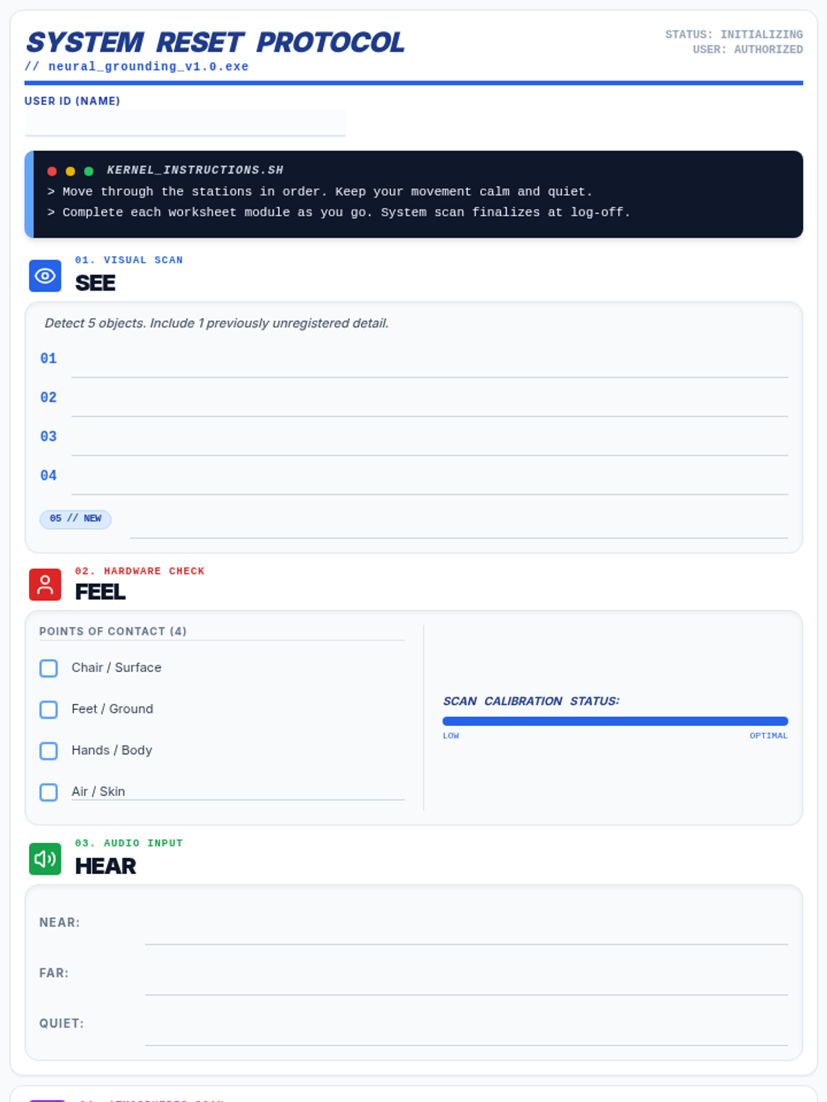 A grounding and mindfulness lesson using a coding-themed 'System Reset' protocol to help students focus and regulate their attention.