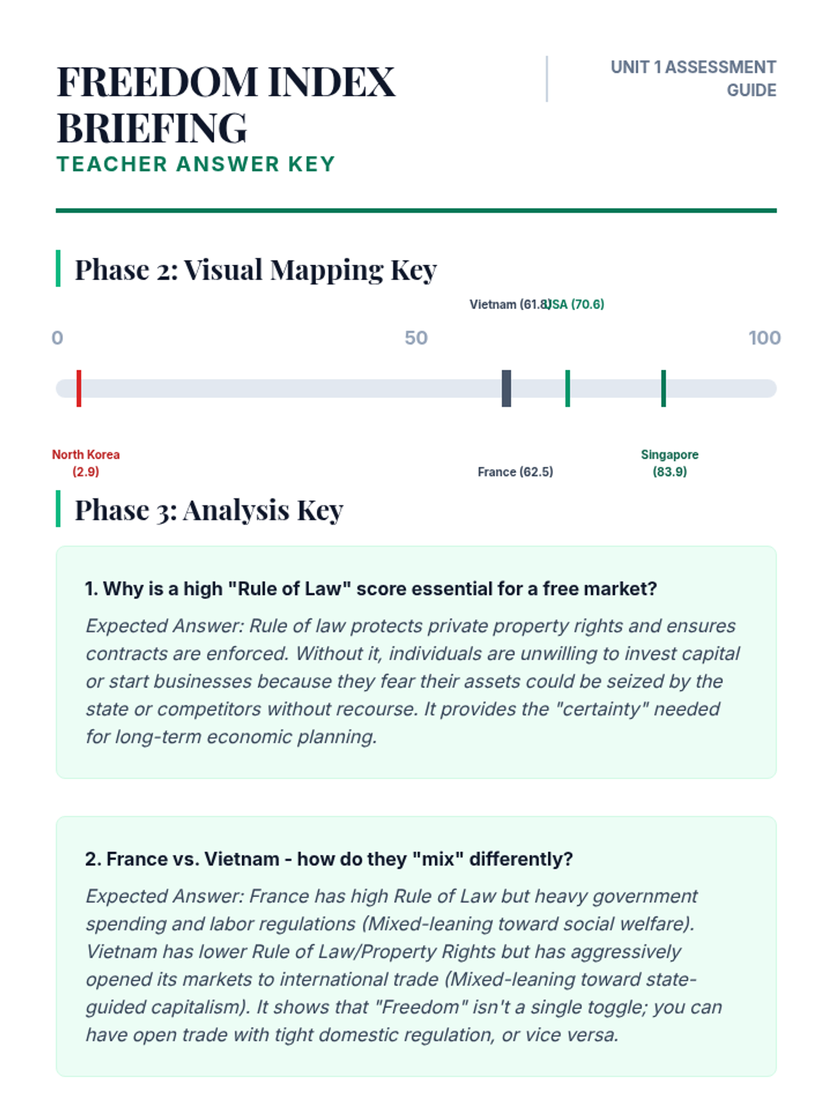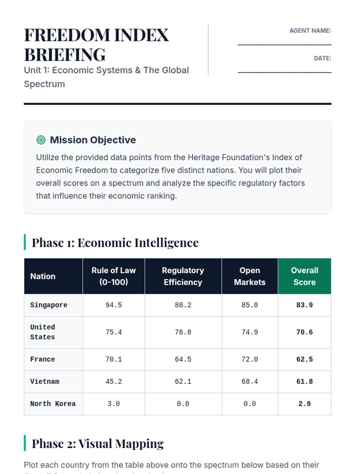 Students explore the concept of a mixed economy by analyzing data from the Heritage Foundation's Index of Economic Freedom to map nations onto an economic spectrum.