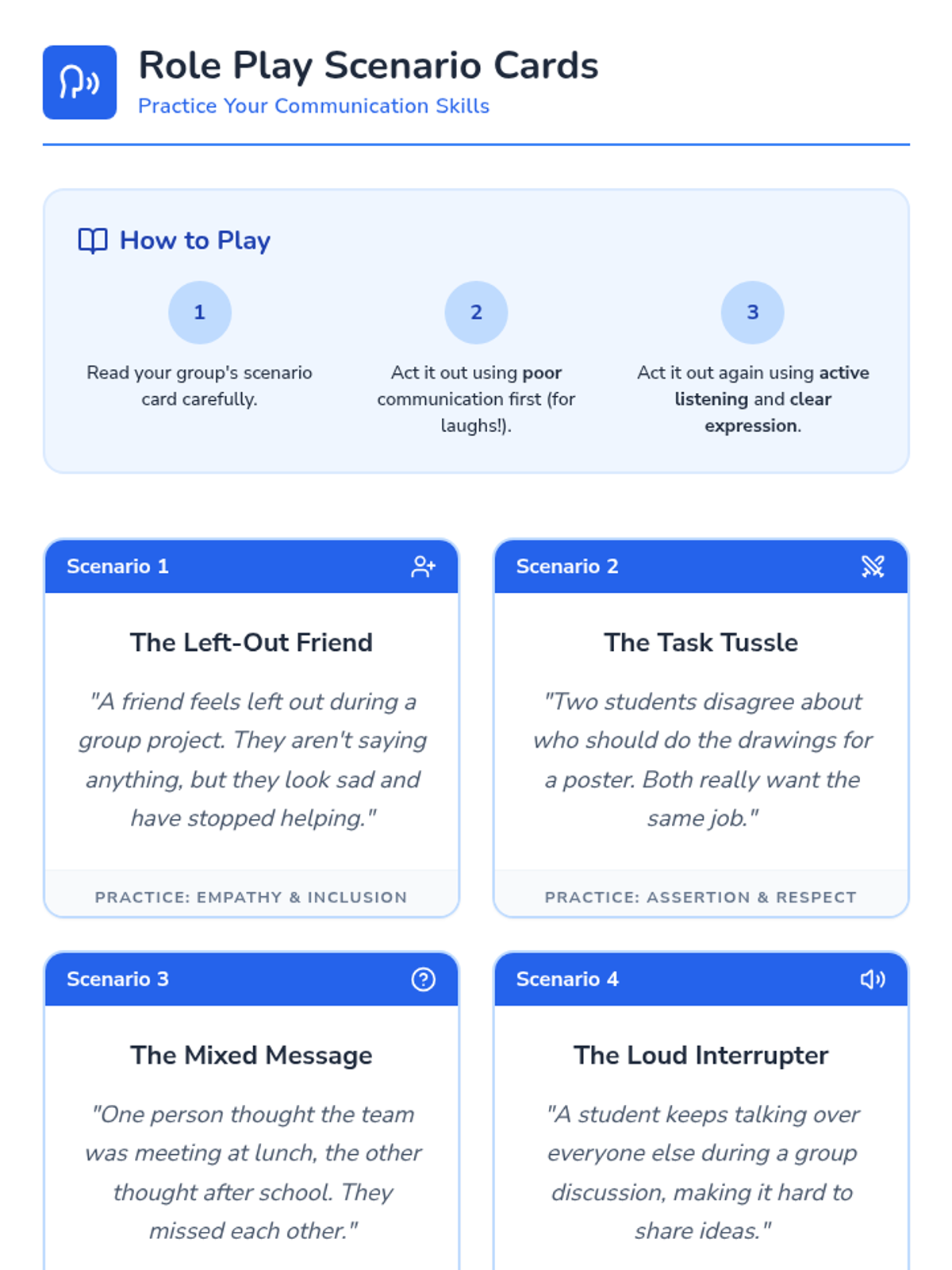 Focuses on active listening and clear expression to help students build healthier relationships and resolve conflicts effectively.