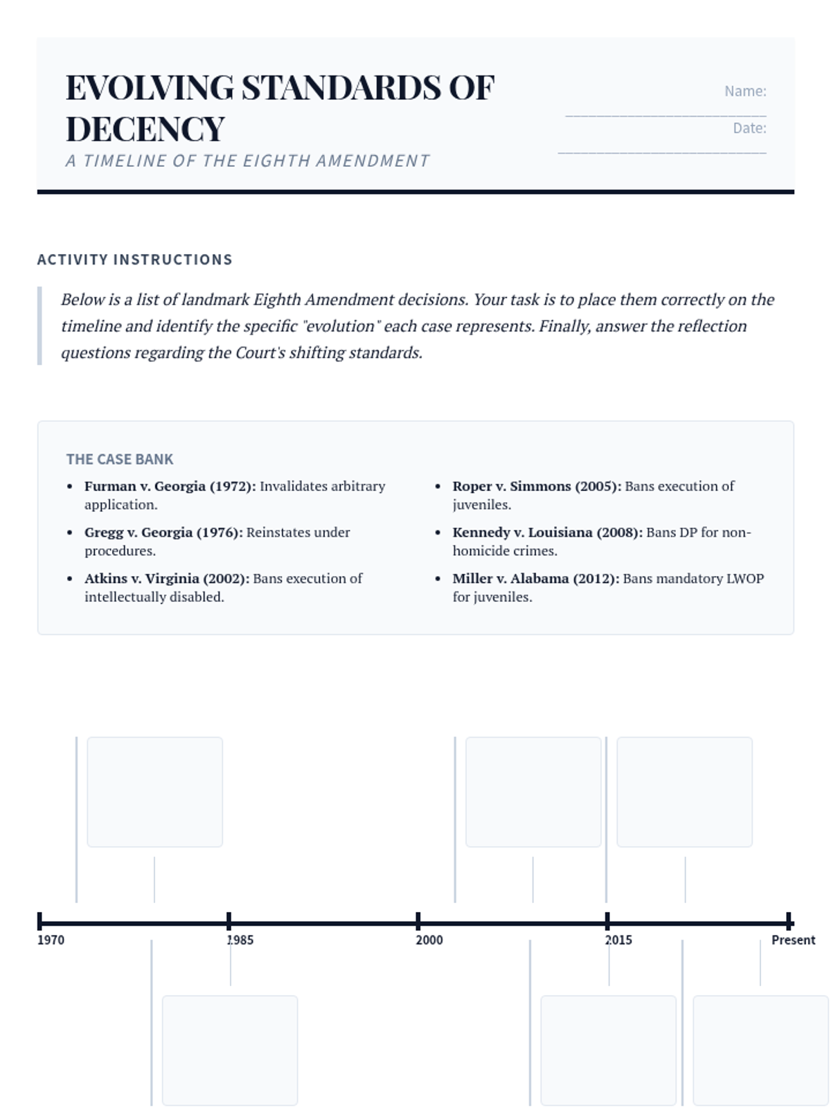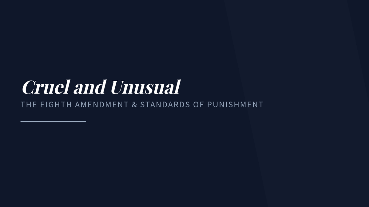 Investigates the Eighth Amendment's evolving standards of decency regarding punishment, capital punishment, and proportionality.