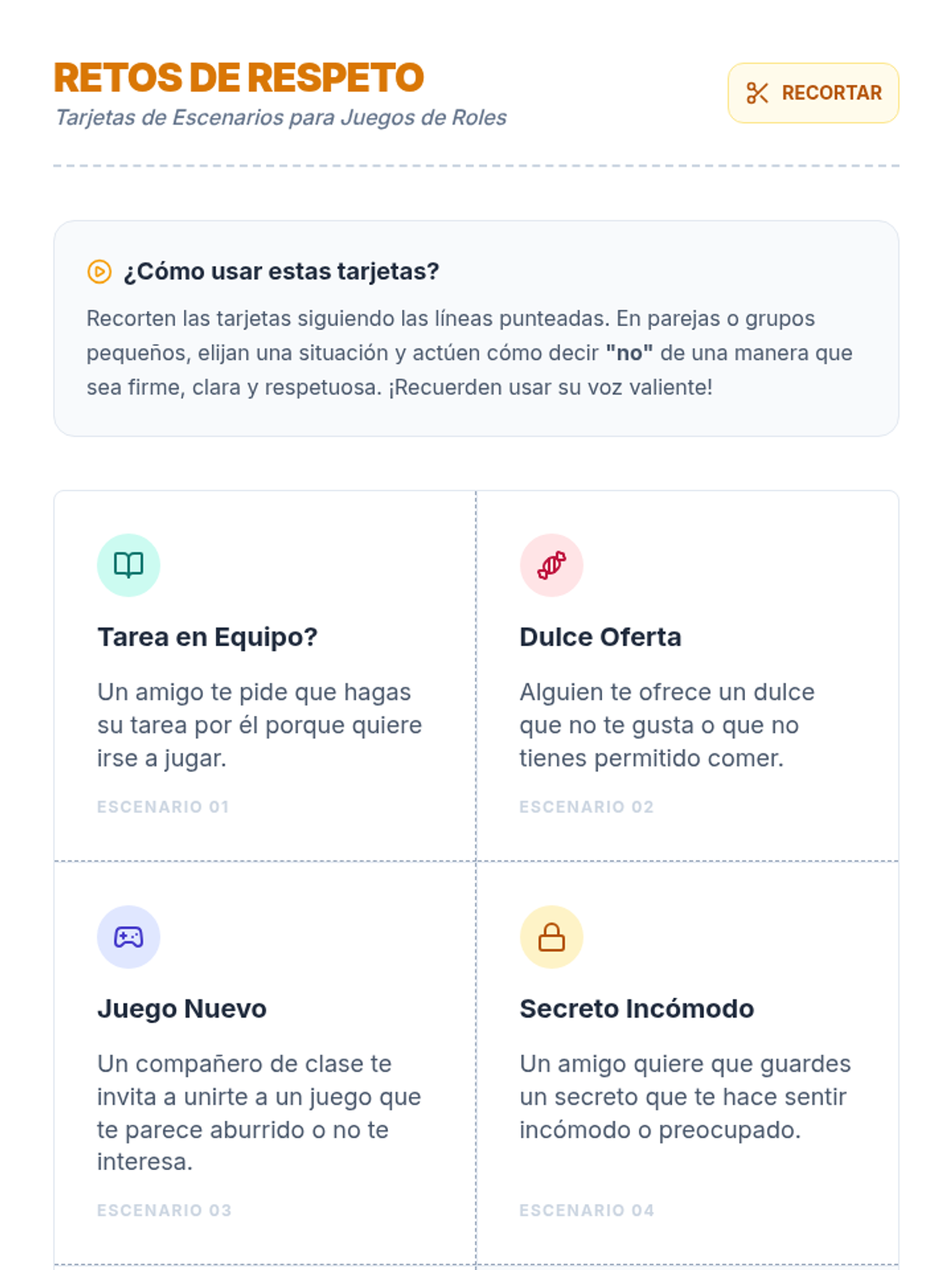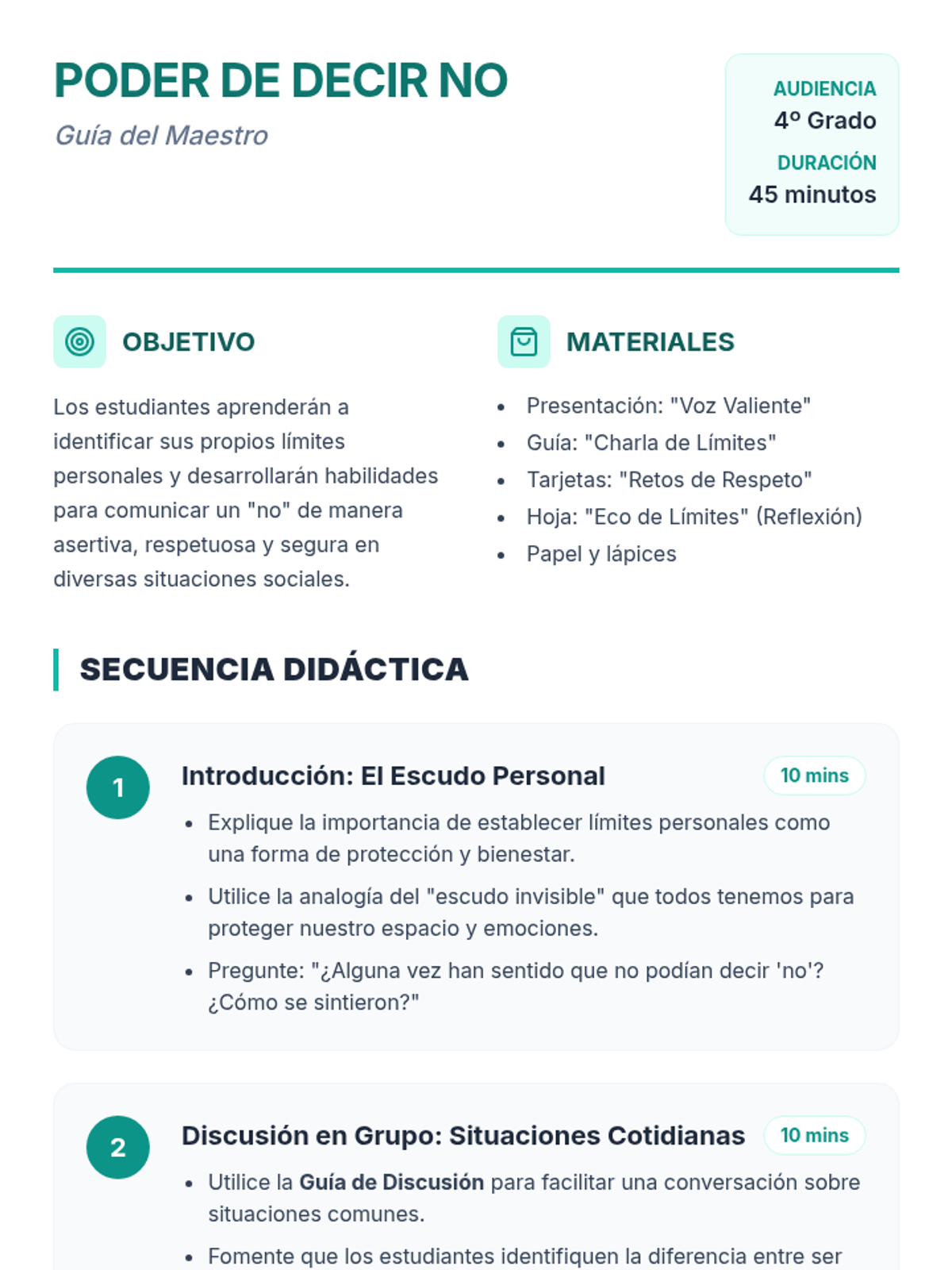 Esta lección enseña a los estudiantes de 4º grado la importancia de establecer límites personales y cómo decir 'no' de manera efectiva y respetuosa a través de juegos de roles y reflexión.