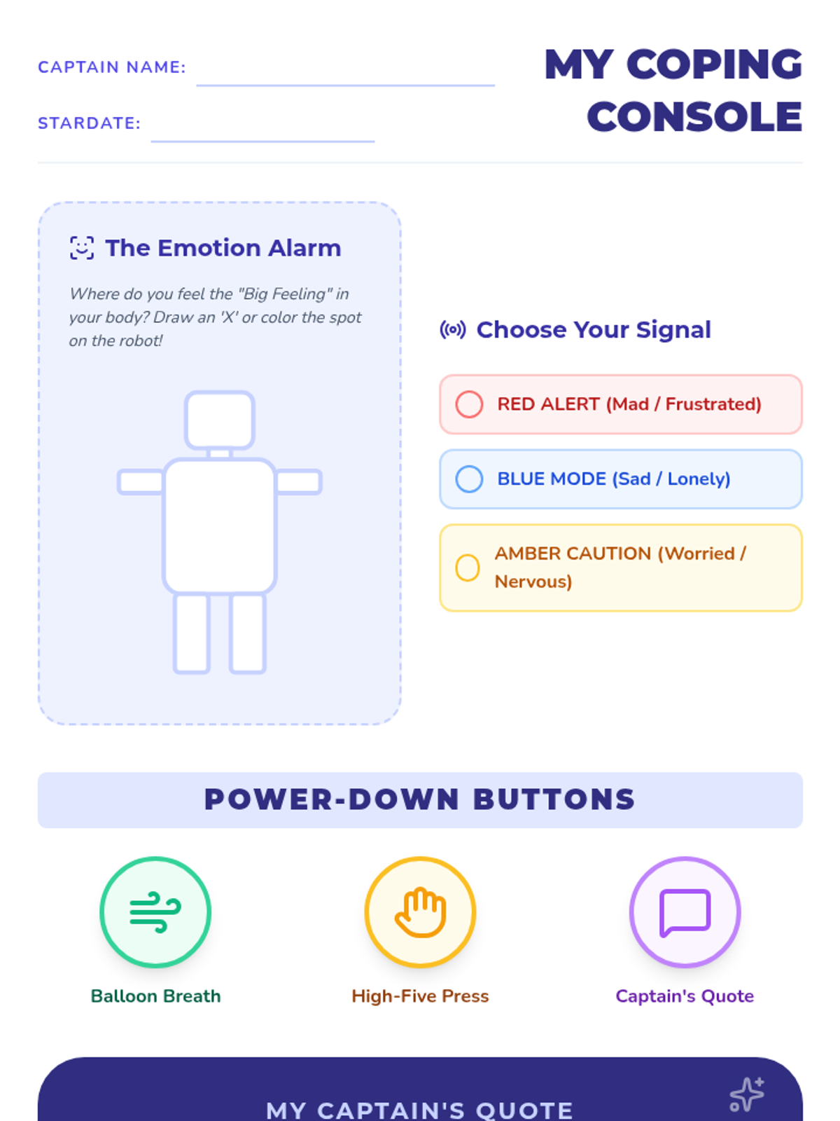 A lesson focused on equipping students with a structured graphic organizer to navigate emotional challenges and peer conflicts using a 'blueprint' approach to problem-solving.
