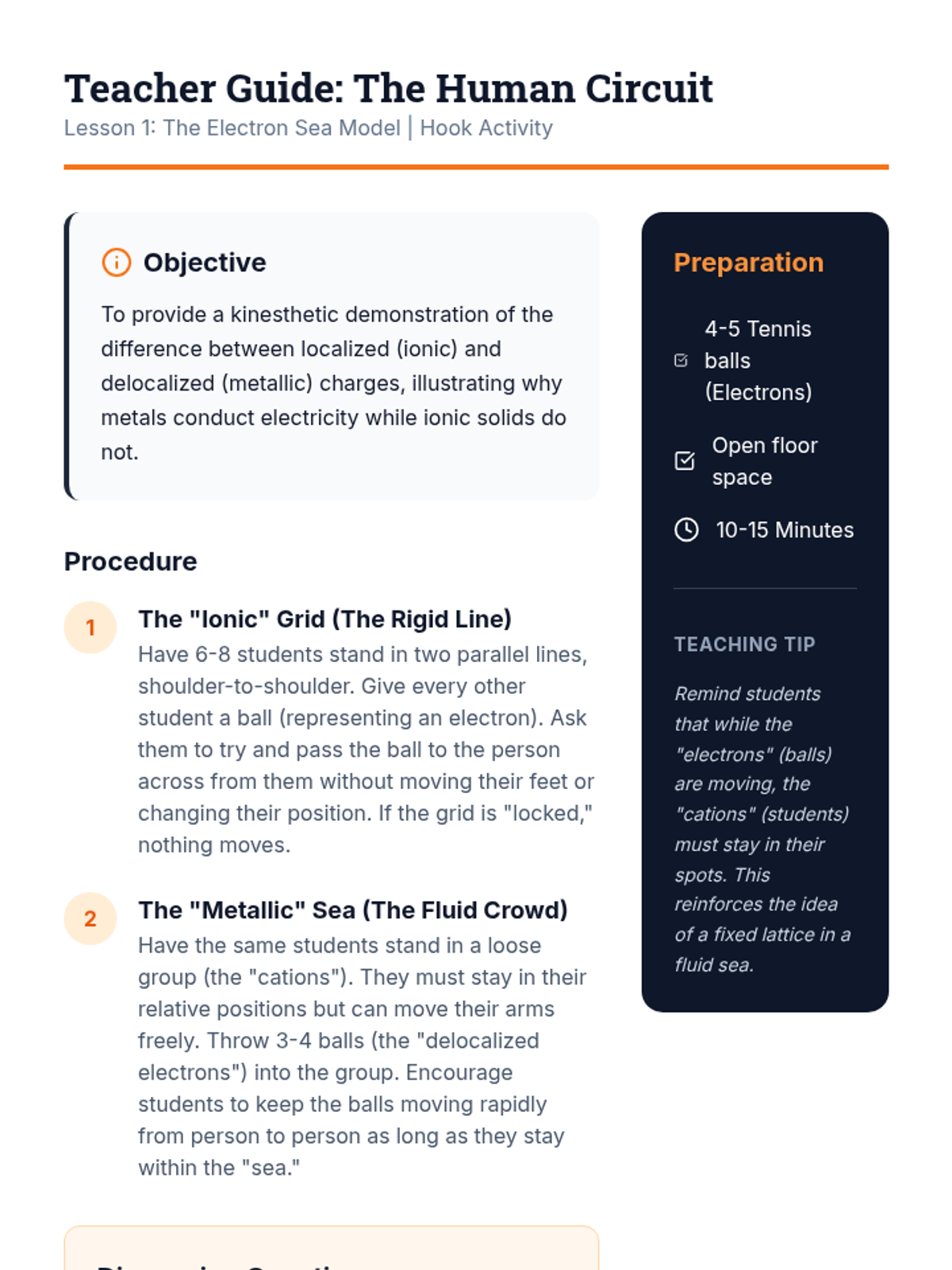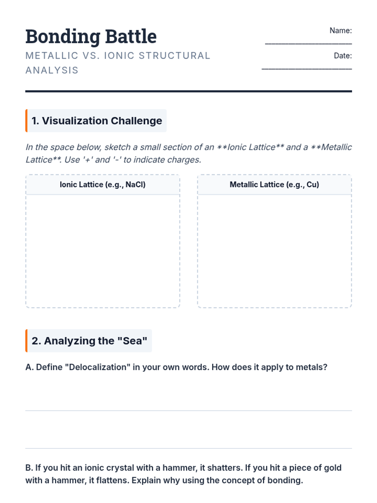 Students explore the concept of delocalized electrons in a metal lattice and compare it to ionic bonding.