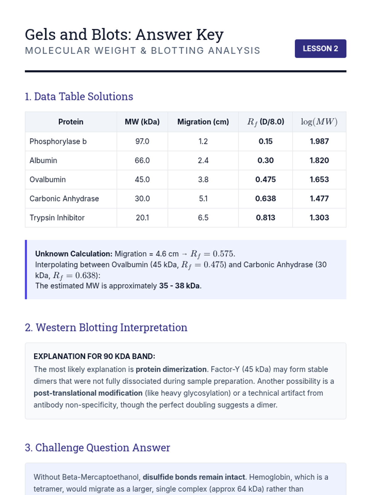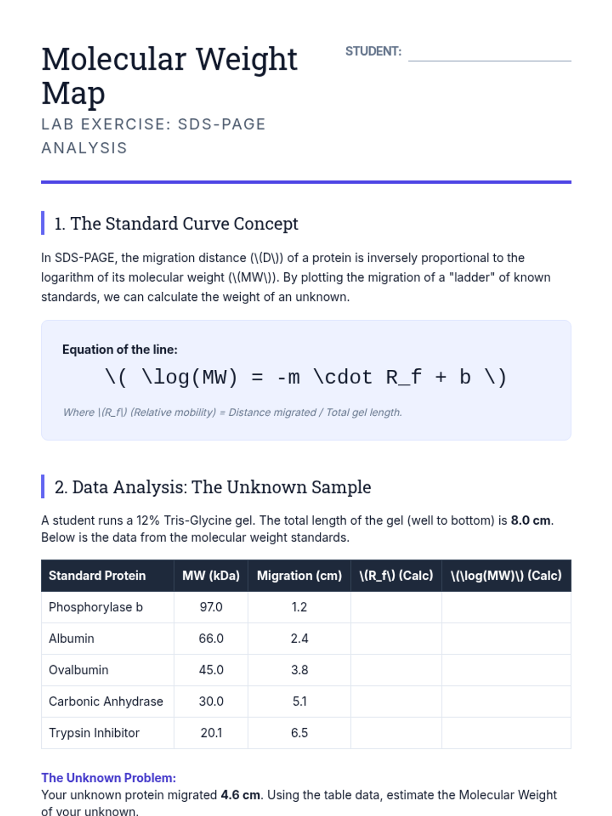 Covers the theory and practice of protein separation by charge and size using electrophoresis. Students analyze SDS-PAGE gels to determine molecular weight and use Western Blotting for specific protein detection.