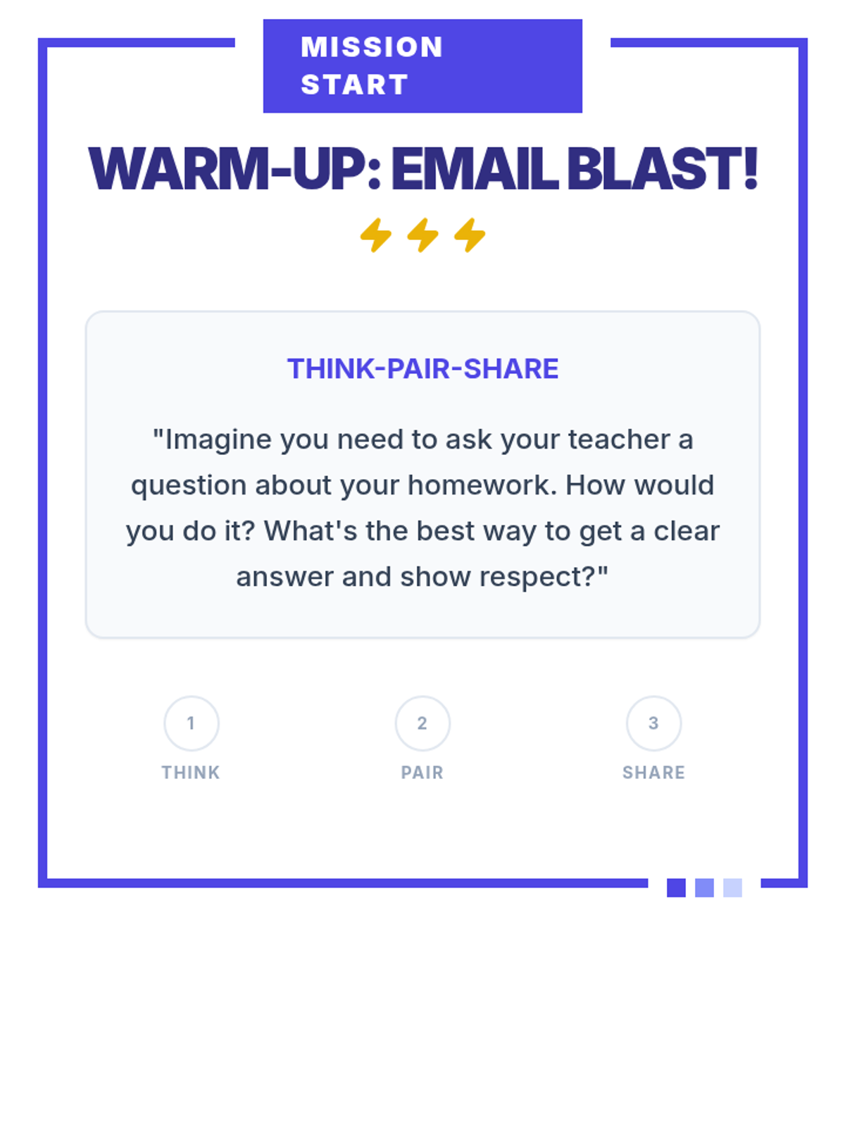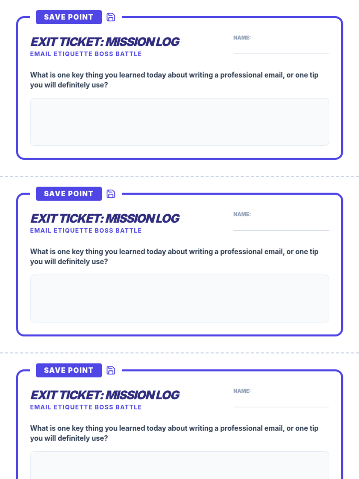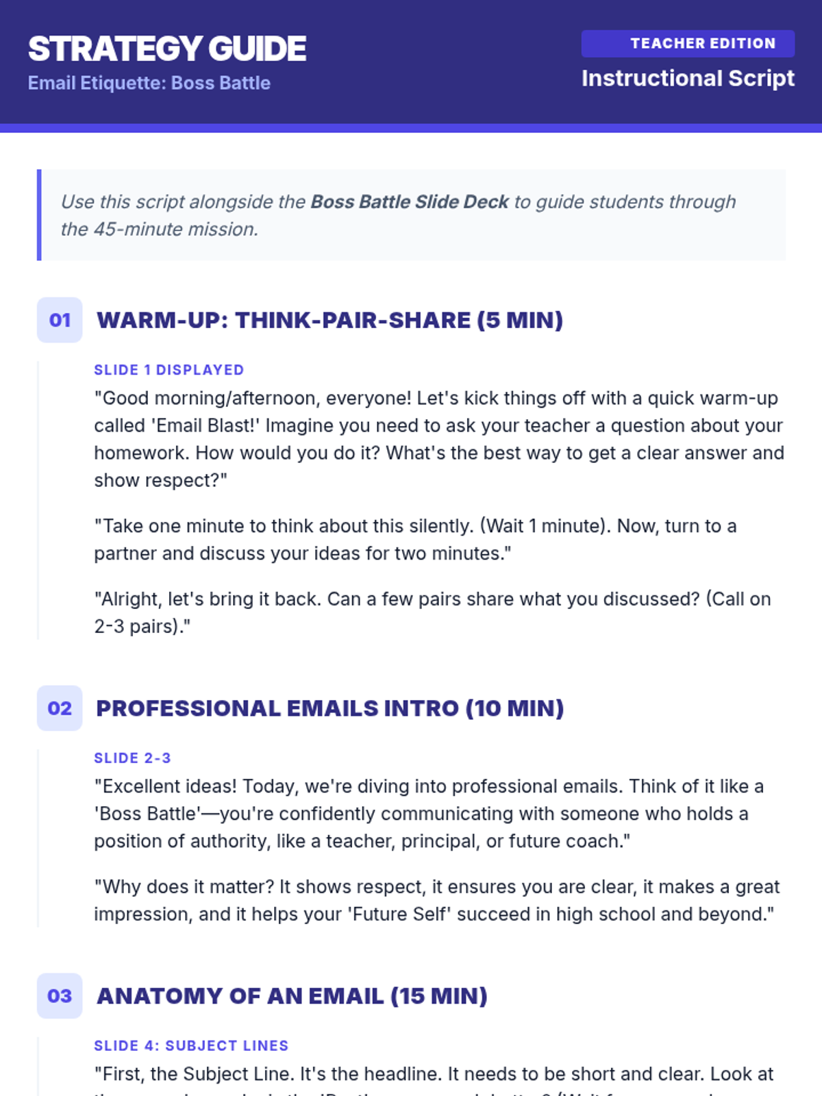 Students master the art of professional email communication through a gamified 'Boss Battle' theme, learning to navigate greetings, subject lines, and professional tone when contacting authority figures.