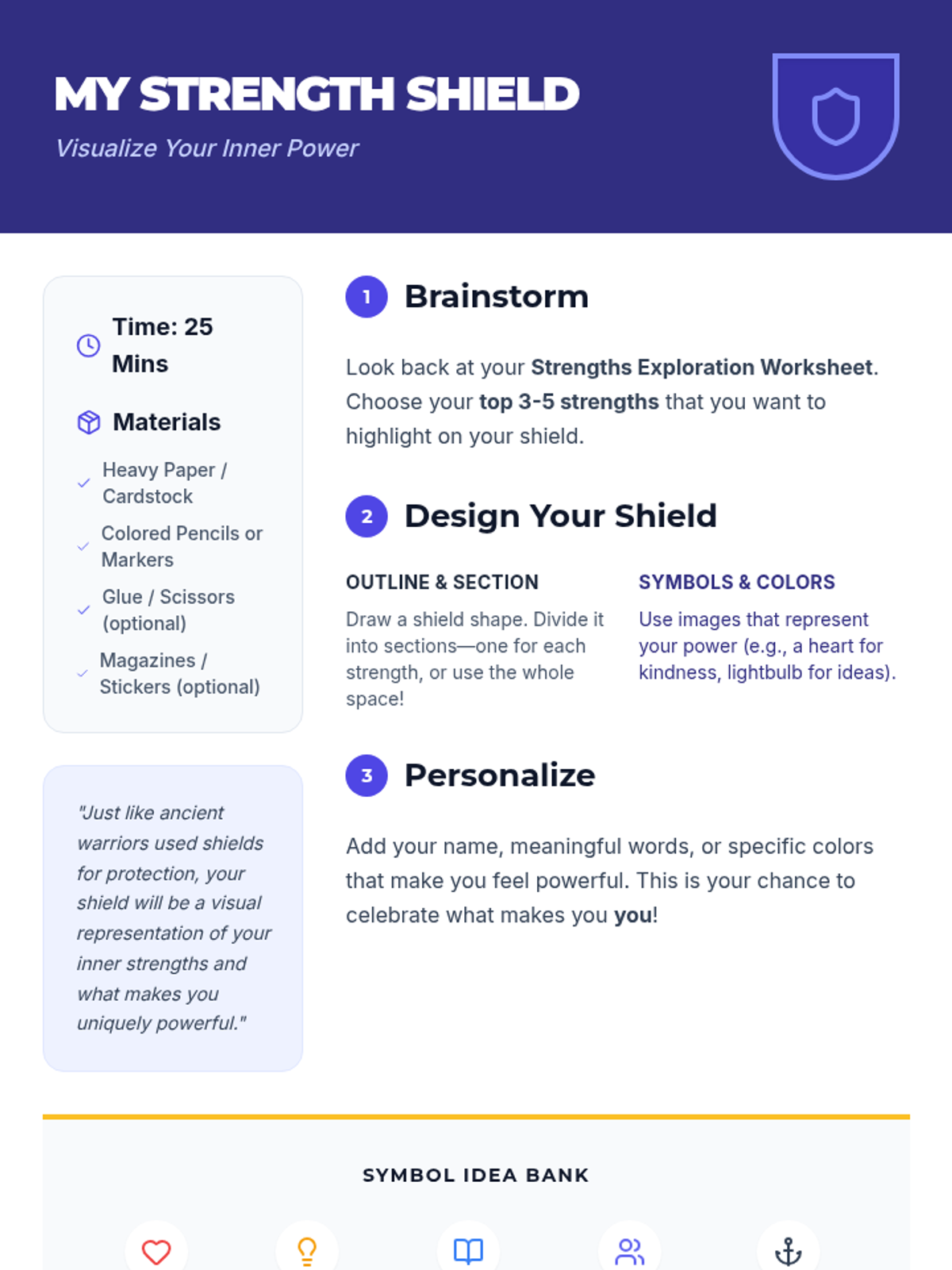 Reviewing various coping skills and creating a personalized 'Survival Kit' for future use.