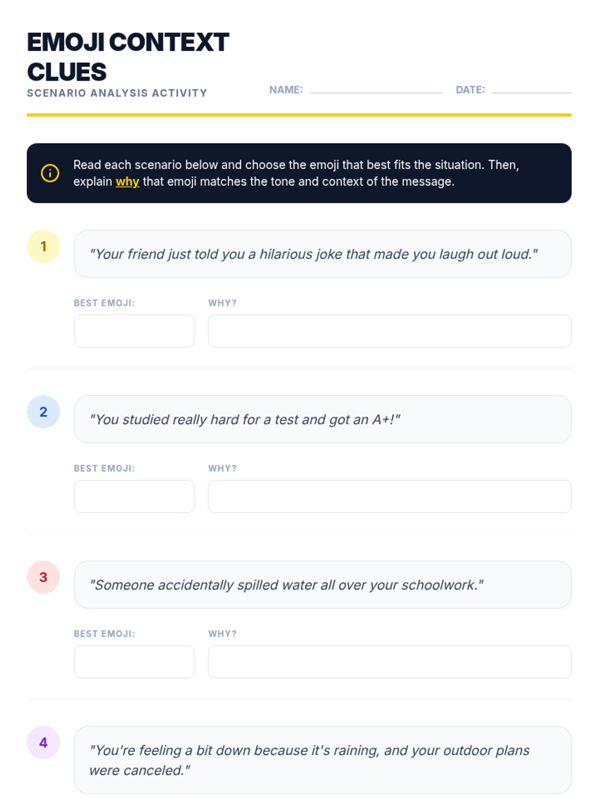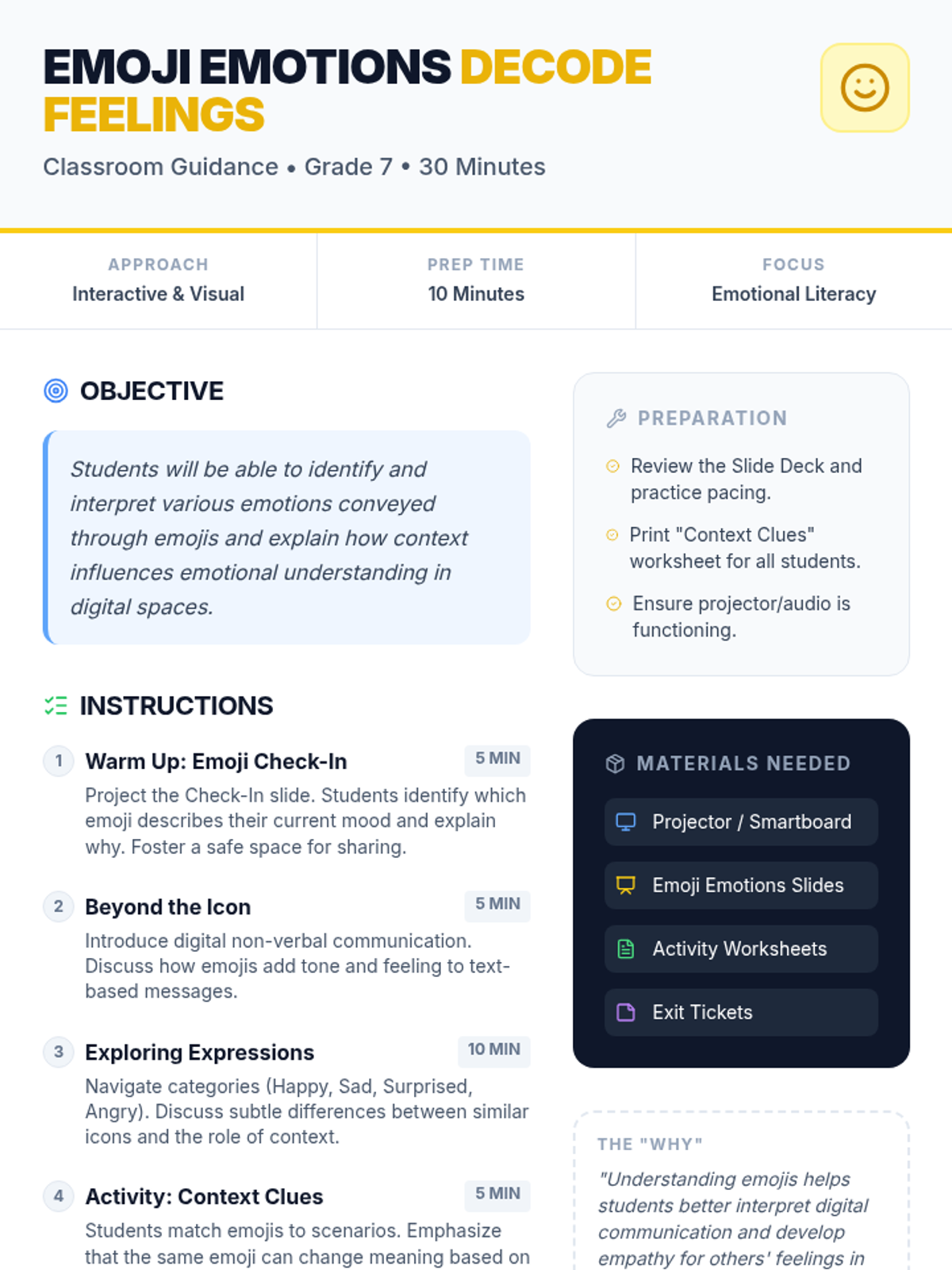 A 30-minute lesson for 7th graders to explore emotional literacy through the lens of emojis and digital communication context.