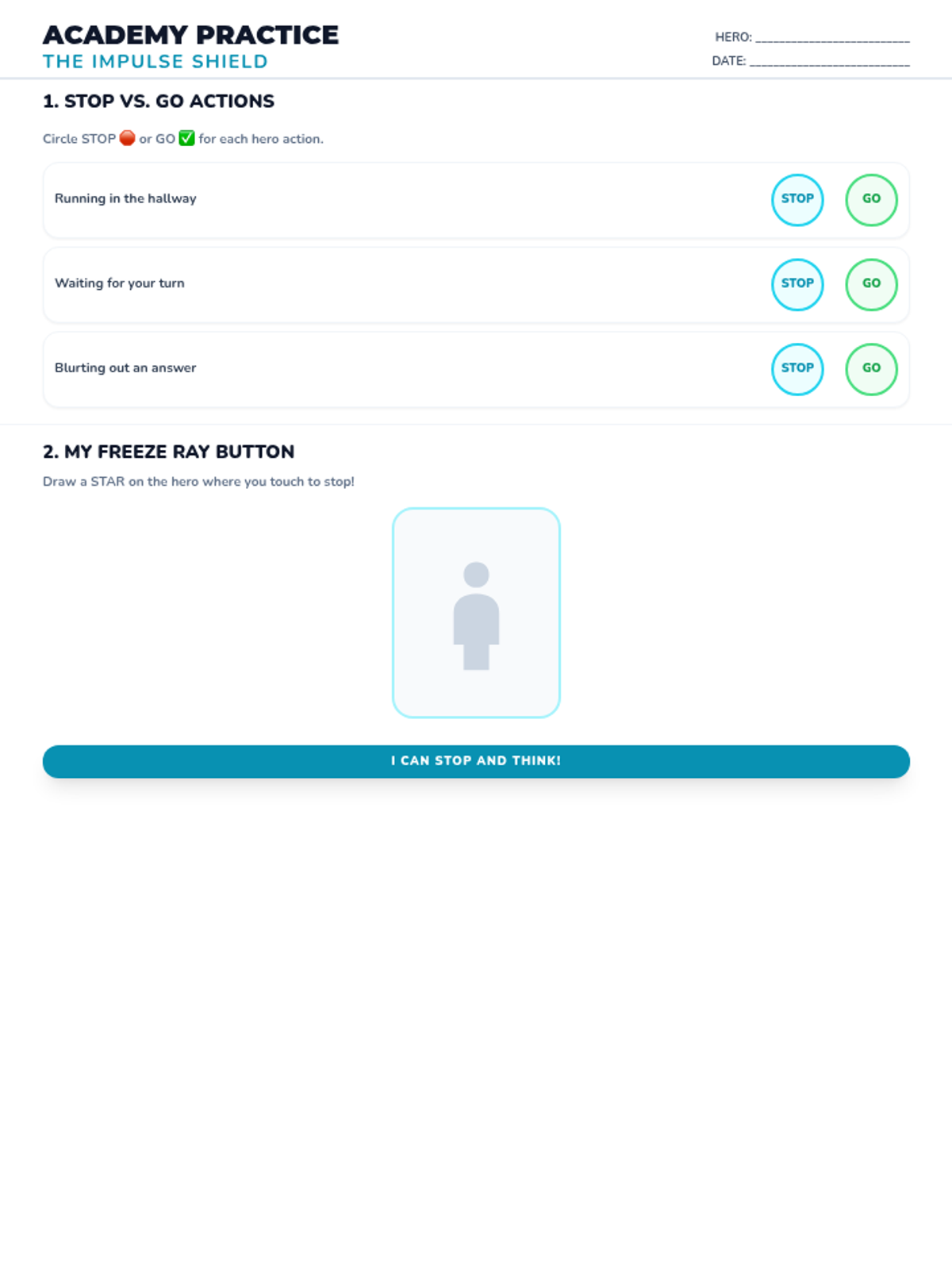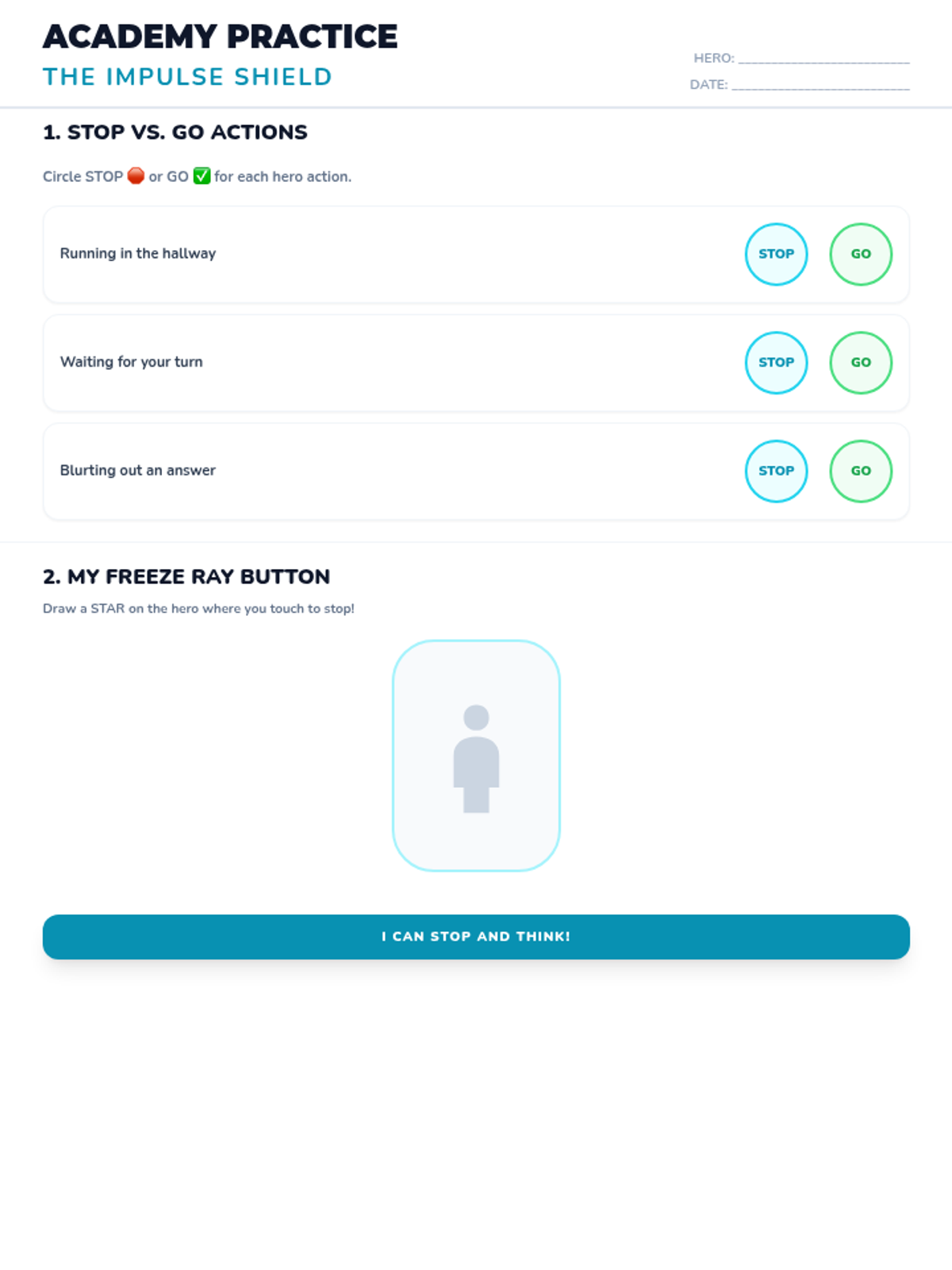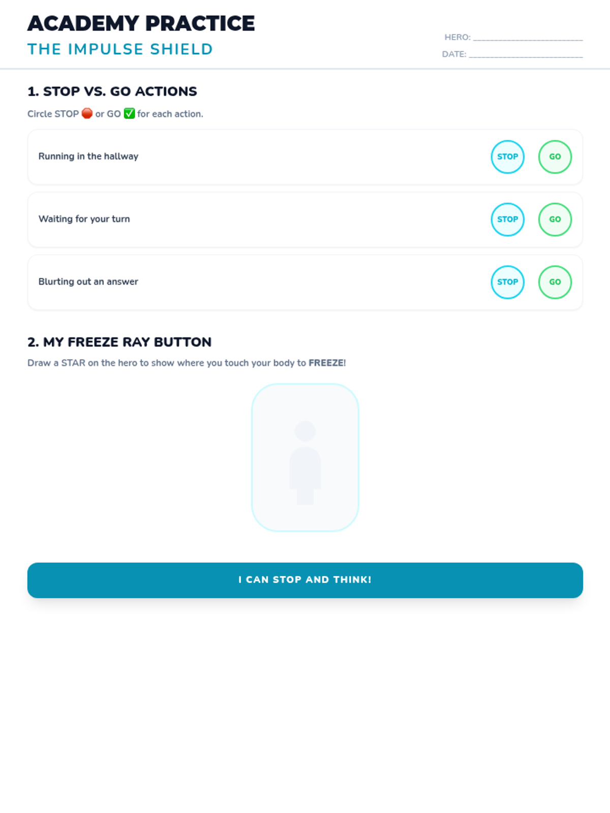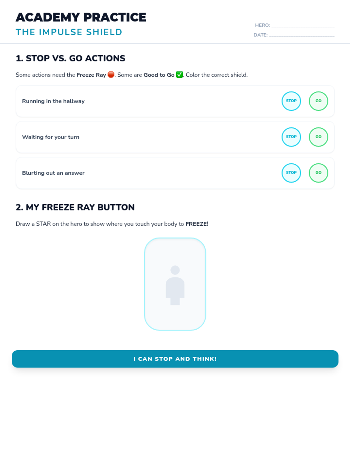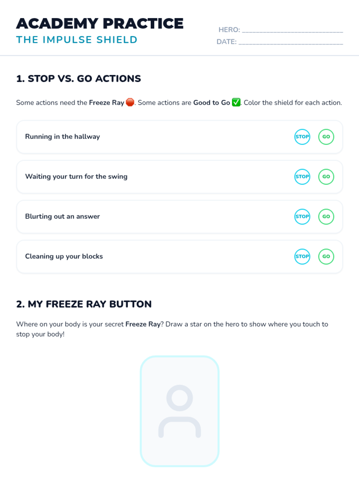 Students learn to control their bodies and impulses by using their 'Freeze Ray' to stop and stay calm when needed.