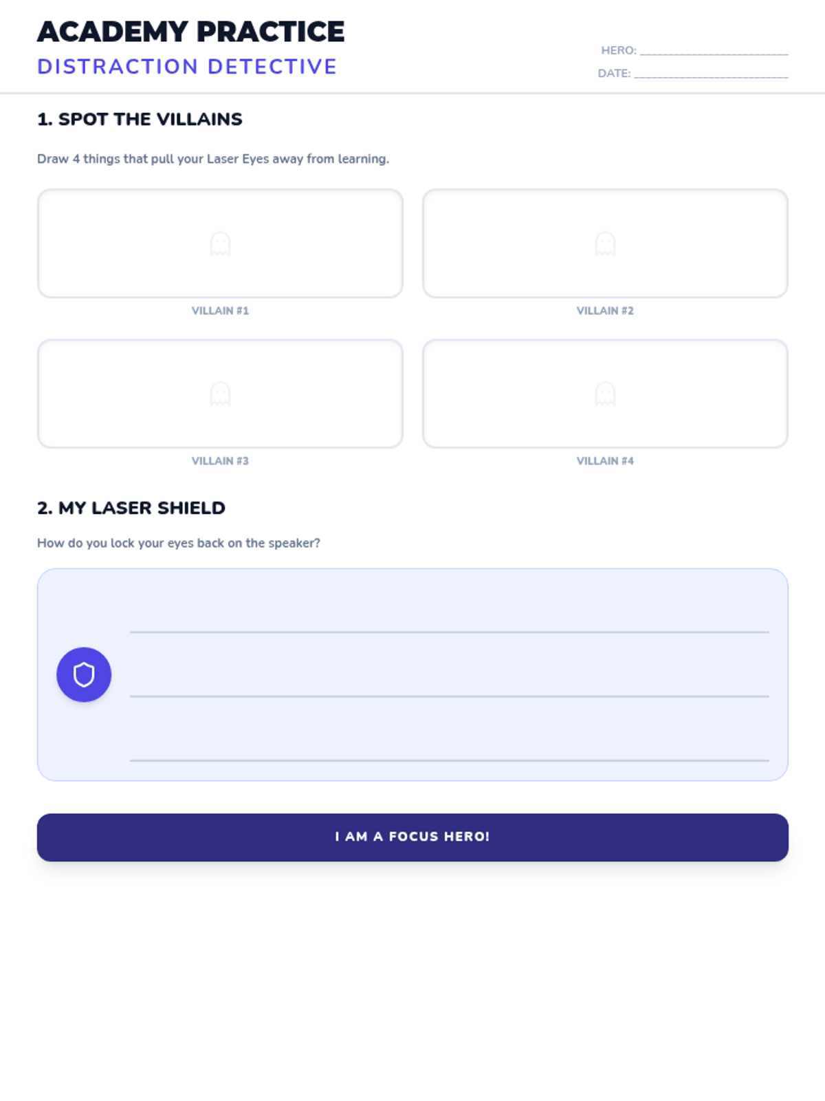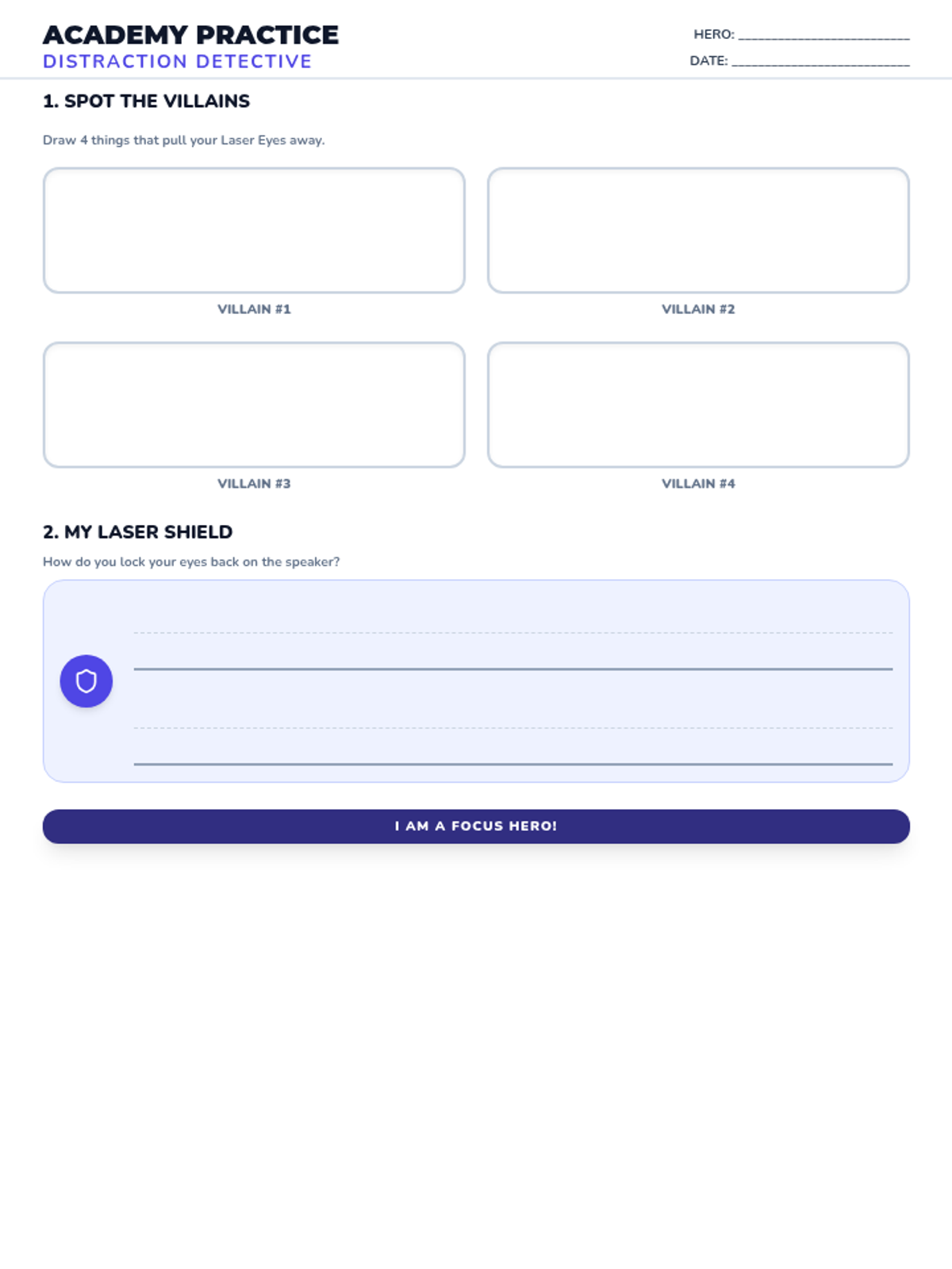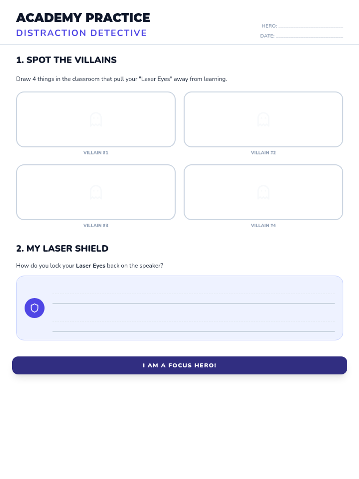 Teaches students how to use 'Laser Eyes' to focus their attention on the speaker and ignore classroom distractions.