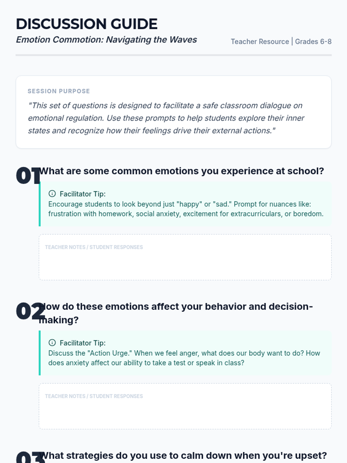 This lesson helps 6th-8th grade students understand emotional regulation by identifying triggers and practicing healthy management strategies through interactive mapping and discussion.