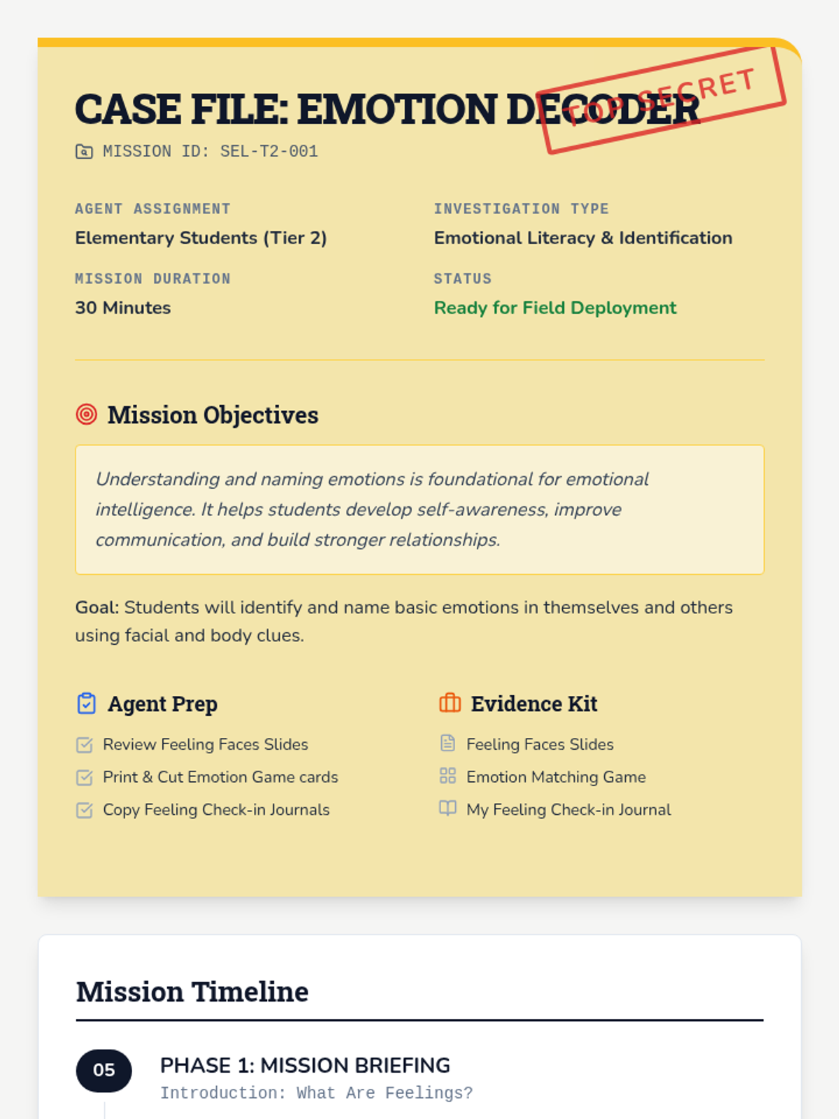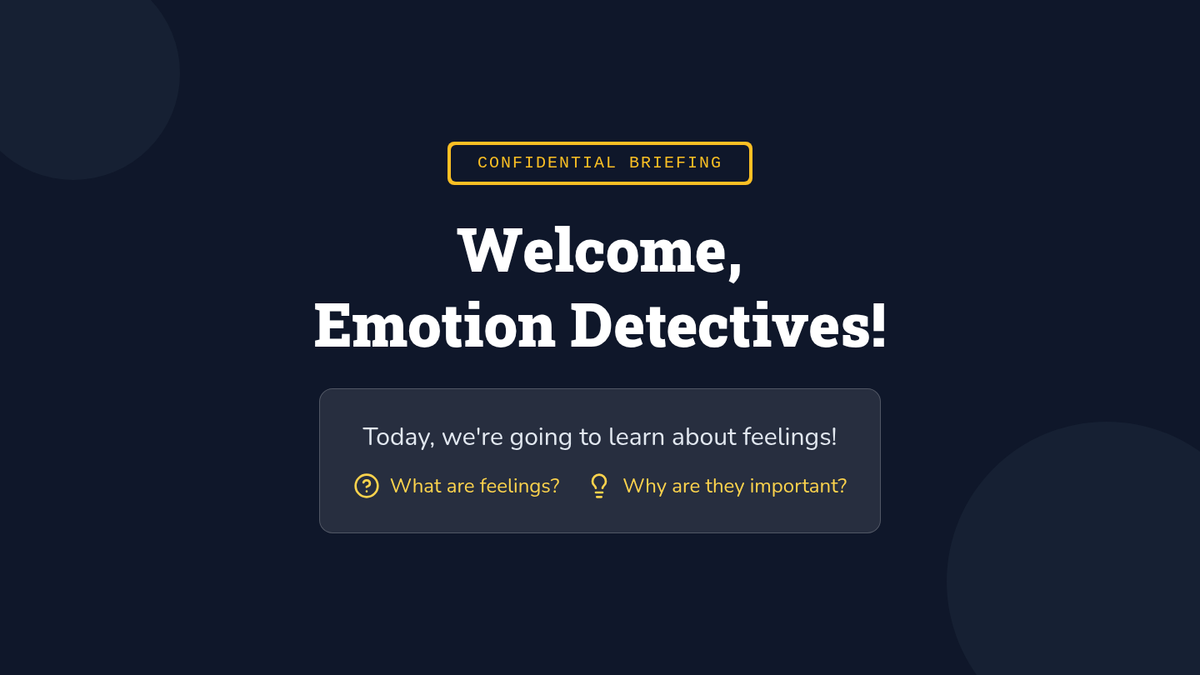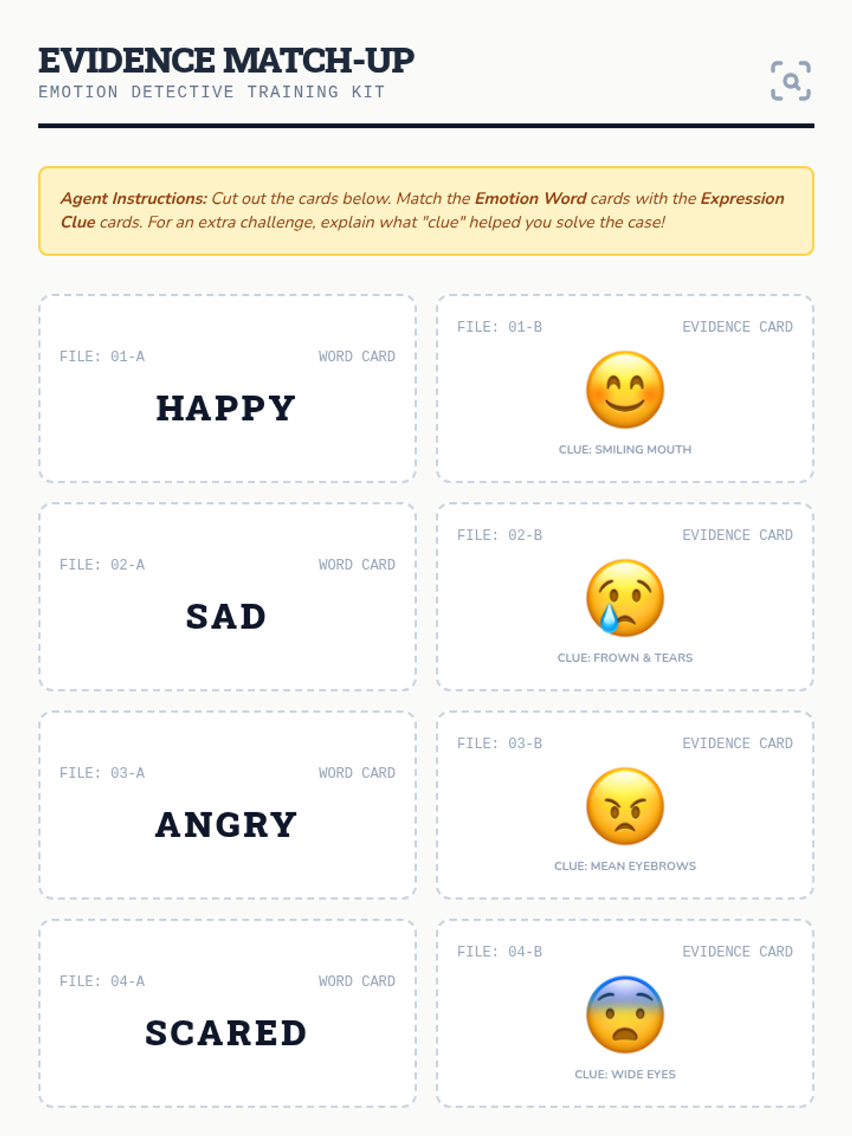 A small group social-emotional learning lesson designed to help students identify and name emotions using facial expressions and body language 'clues'. Students take on the role of Emotion Detectives to build emotional literacy and empathy.