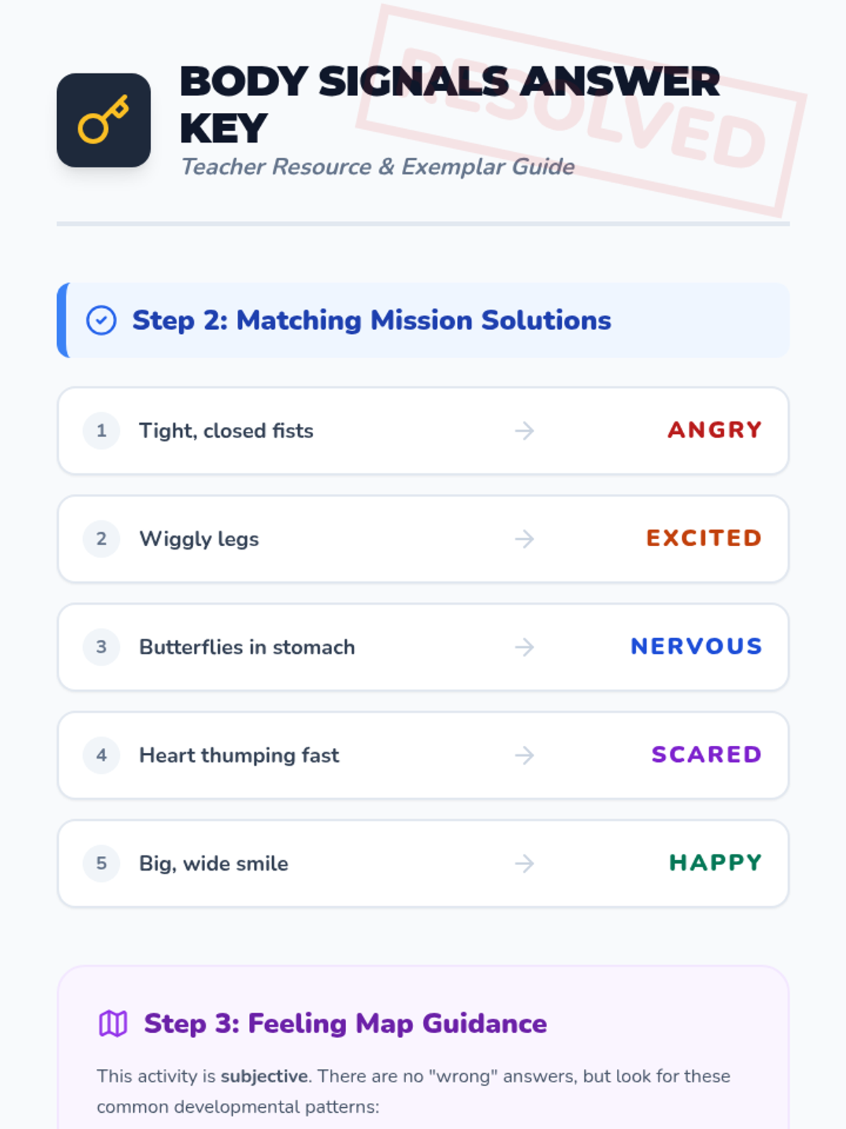 Students become Emotion Detectives to identify and name core emotions by looking for facial and body clues. This K-3 lesson focuses on happy, sad, angry, scared, surprised, and disgusted.