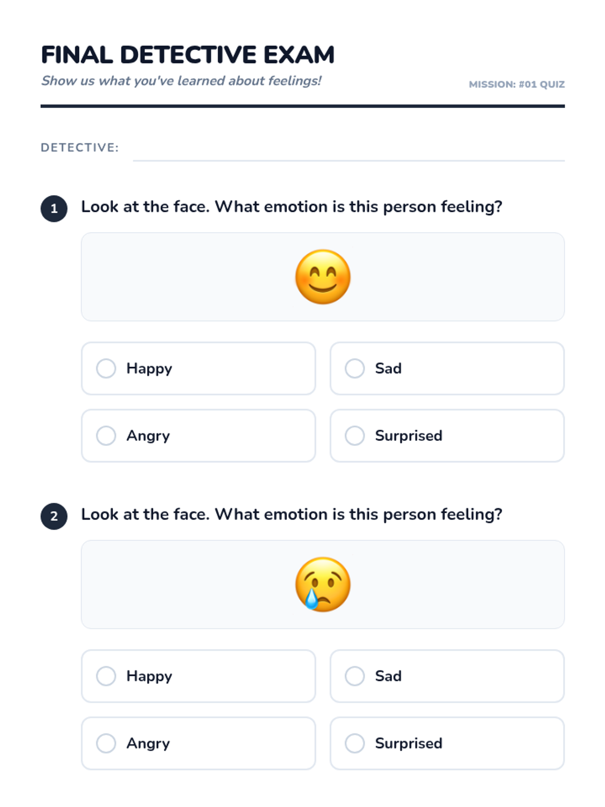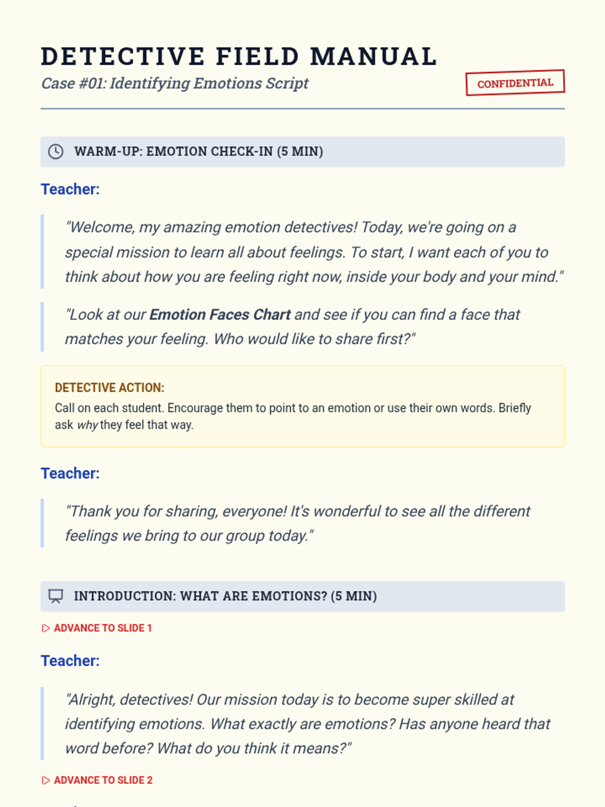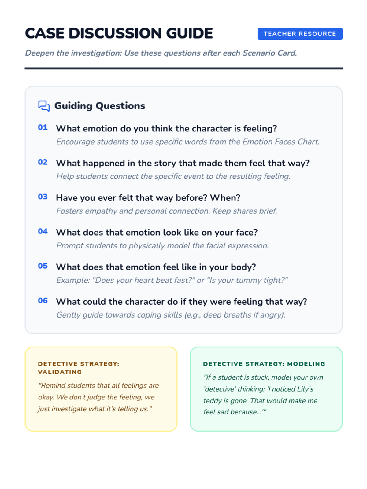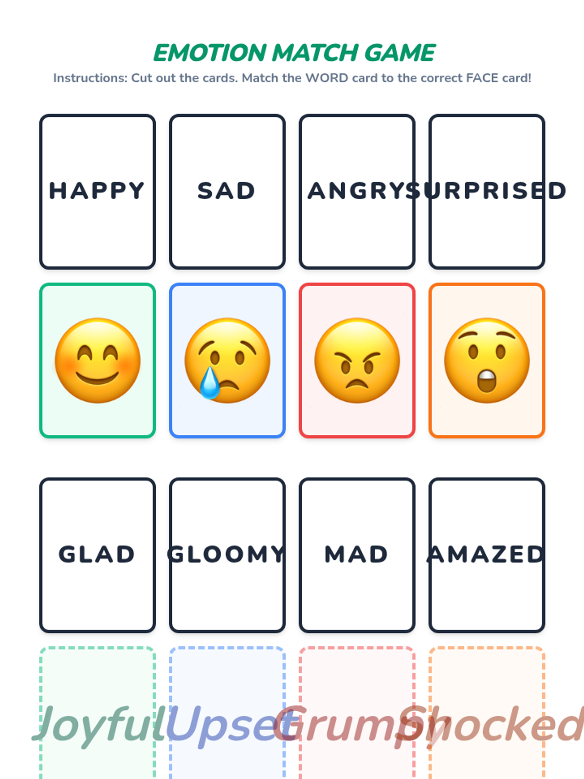 A 30-minute social-emotional learning lesson for 1st graders to identify and understand basic emotions through interactive play and discussion.