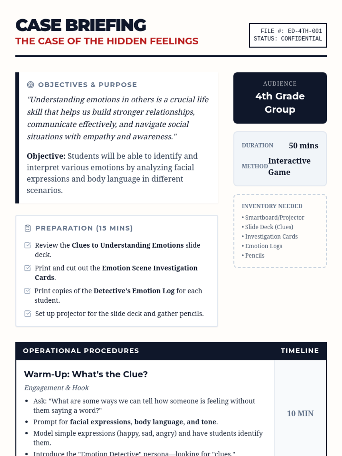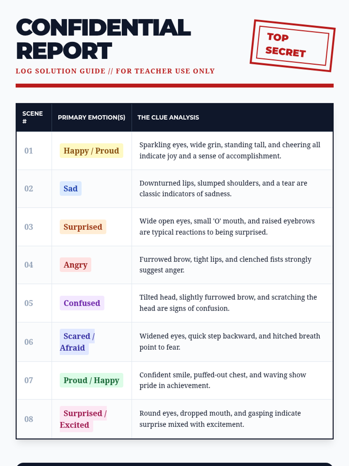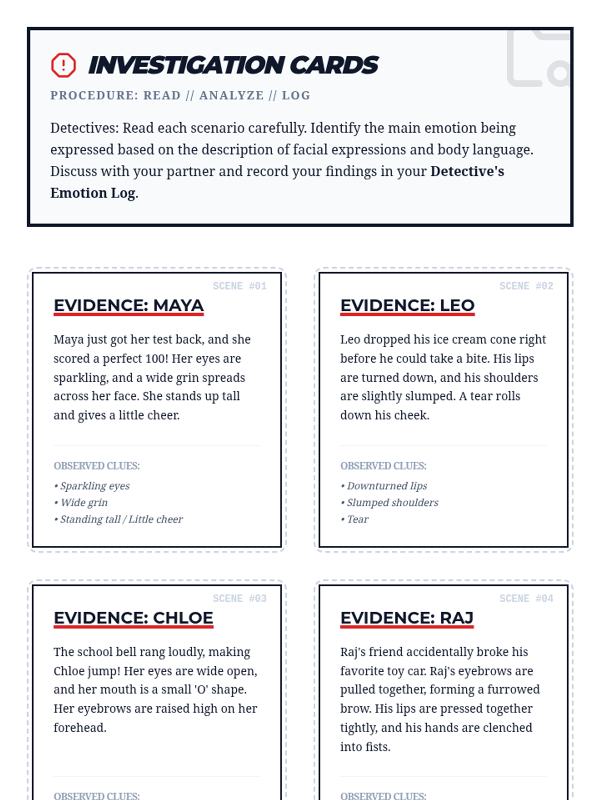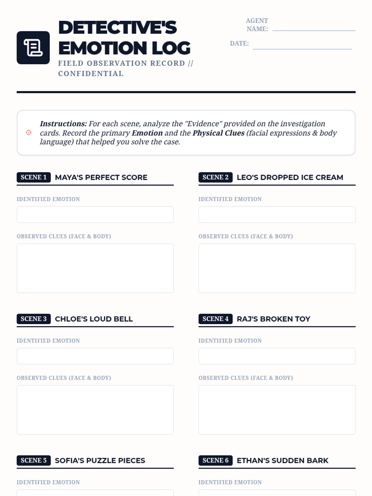 Students become 'emotion detectives' by analyzing facial expressions and body language in various scenarios. This small group activity hones their ability to identify emotions in others, fostering empathy and social awareness.
