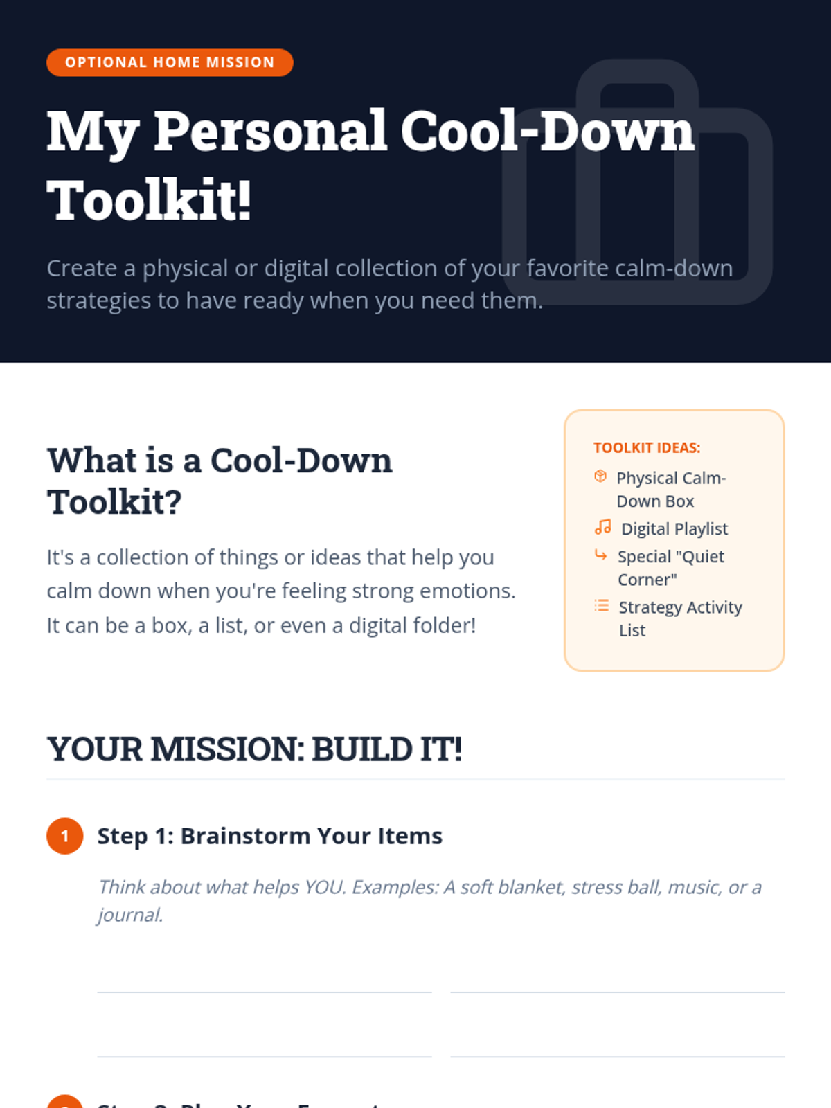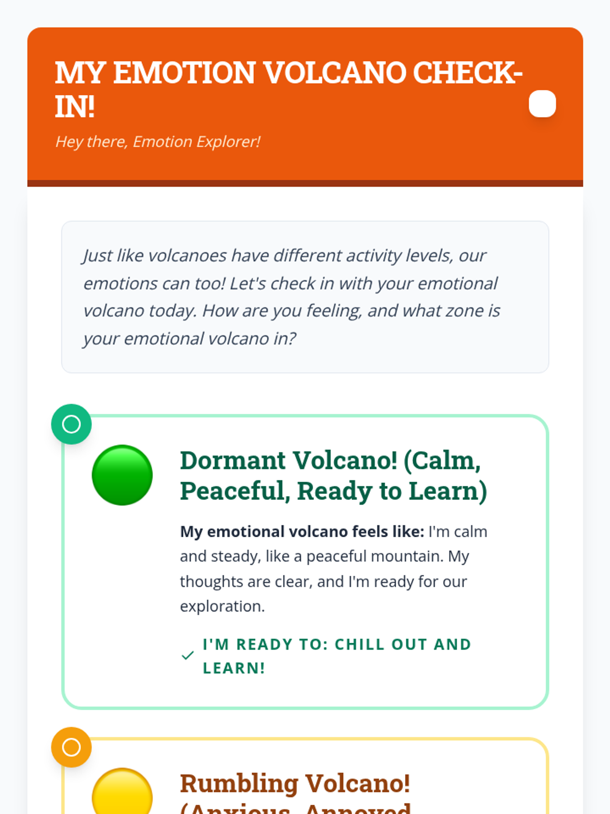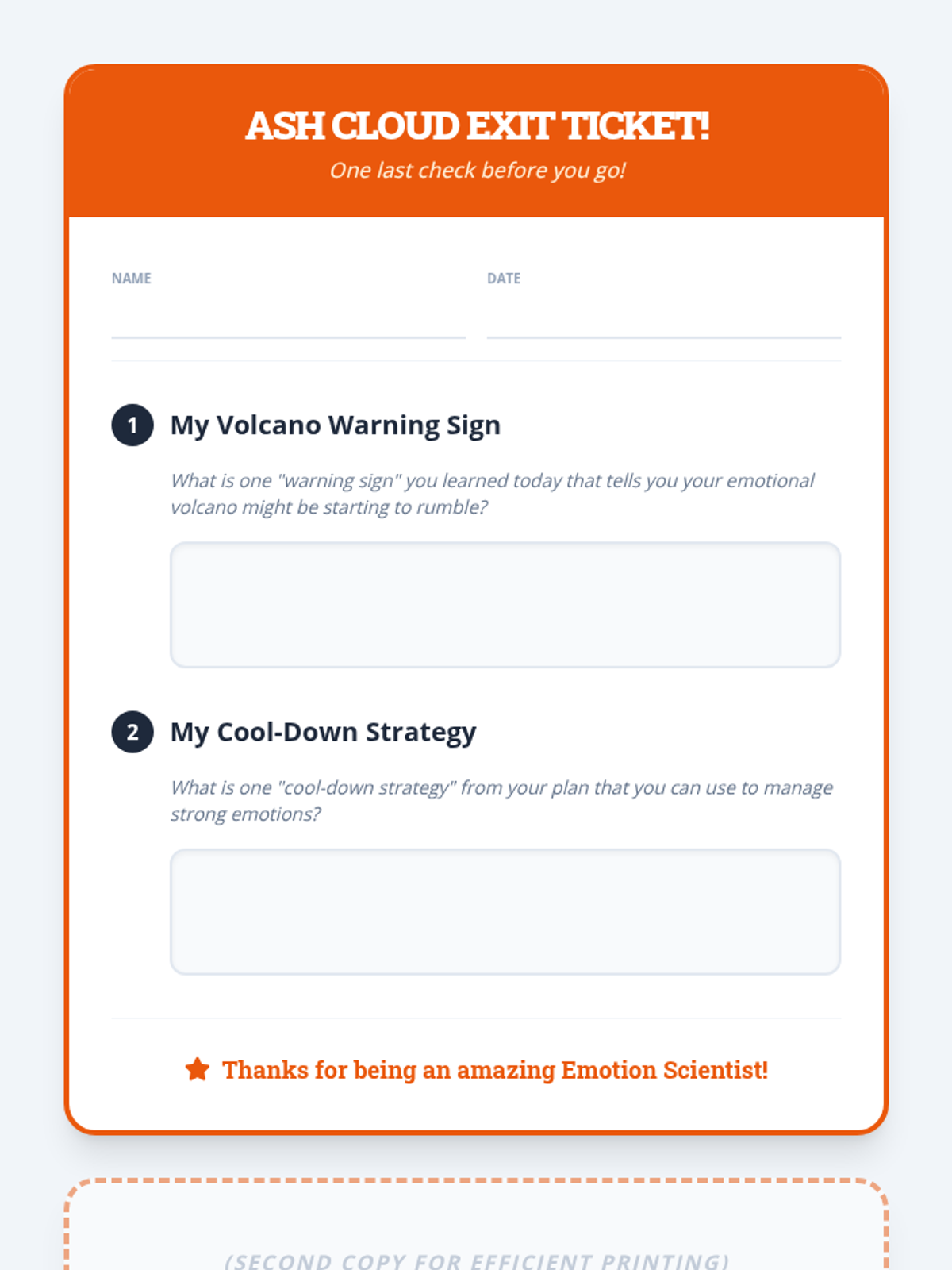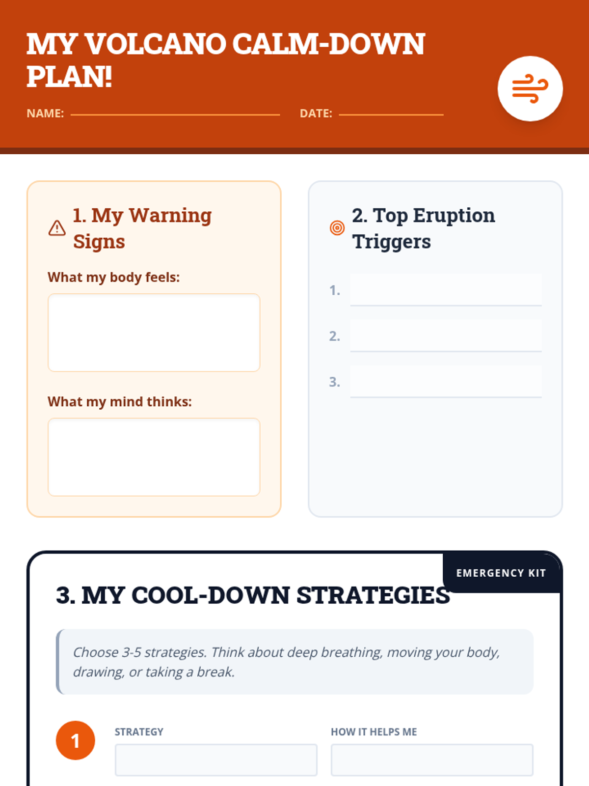 A 50-minute lesson for middle school students to understand and manage strong emotions using a volcano metaphor, focusing on identifying "warning signs" and implementing "cool-down strategies."