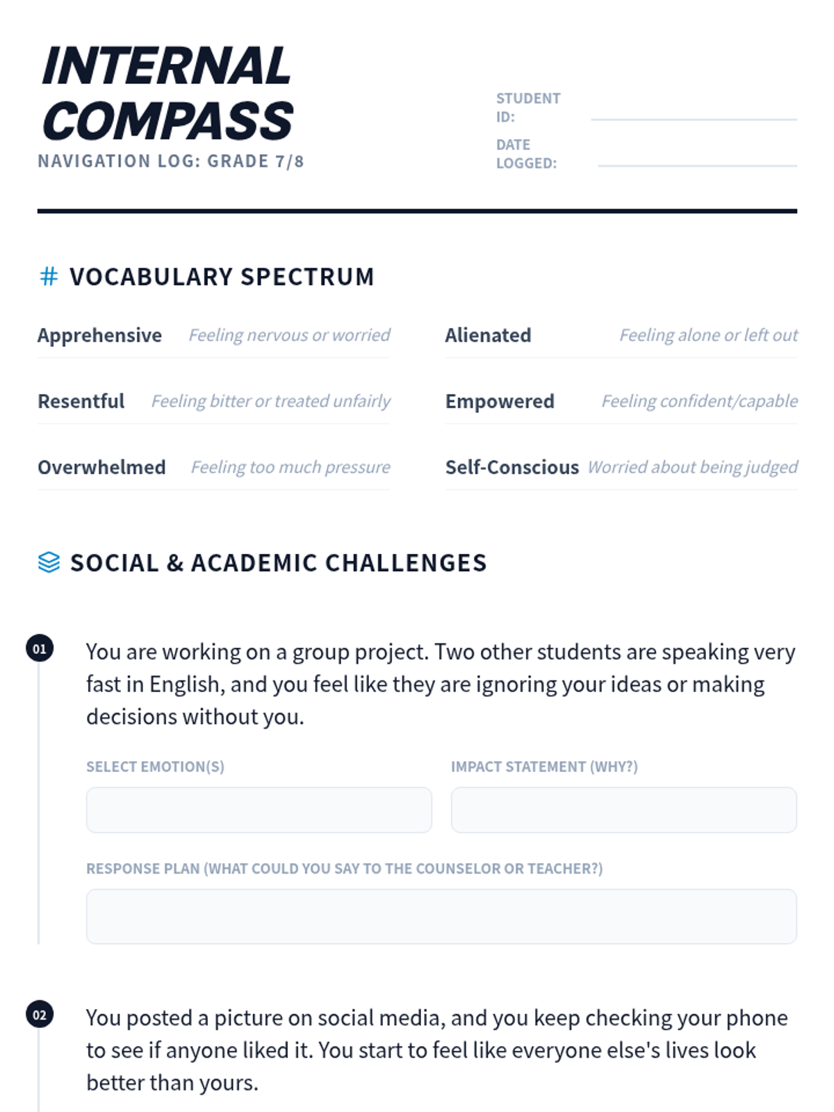 A developmentally appropriate social-emotional lesson for middle school ELL students (Grades 7-8) focused on navigating complex social dynamics, academic pressure, and self-identity using advanced vocabulary and sentence structures.