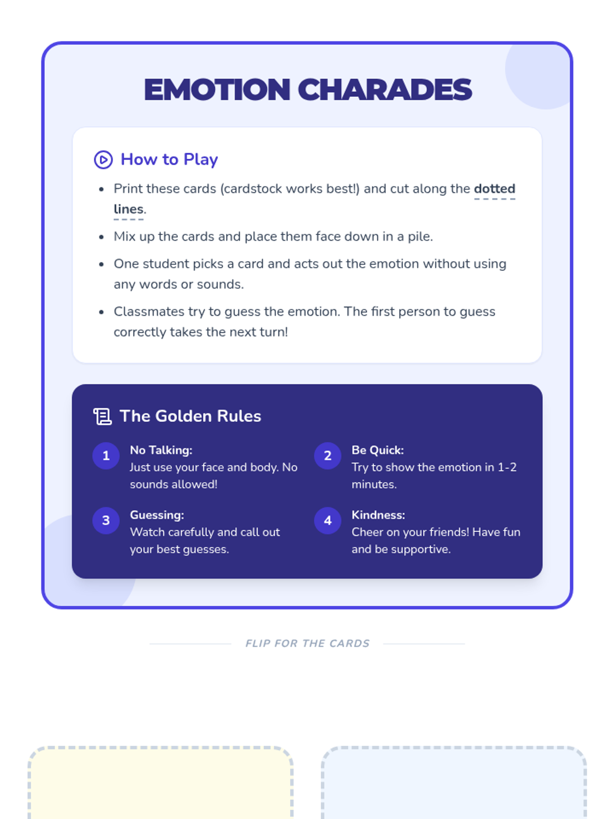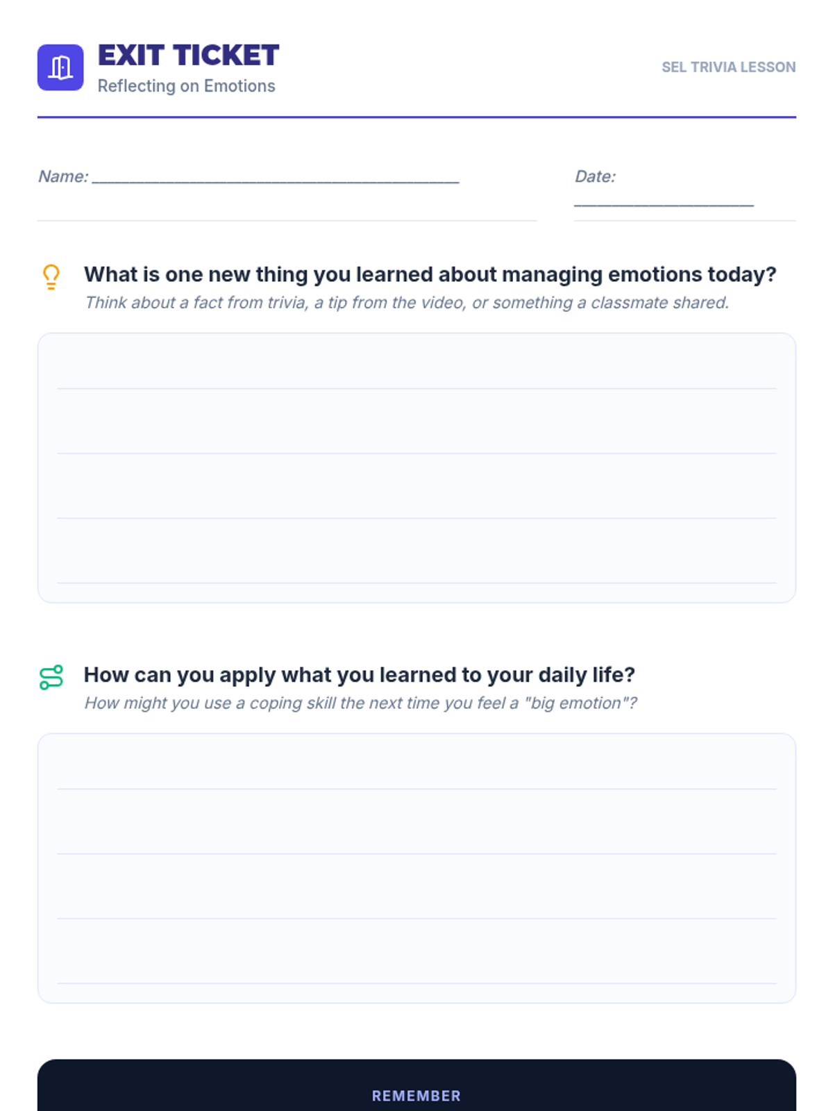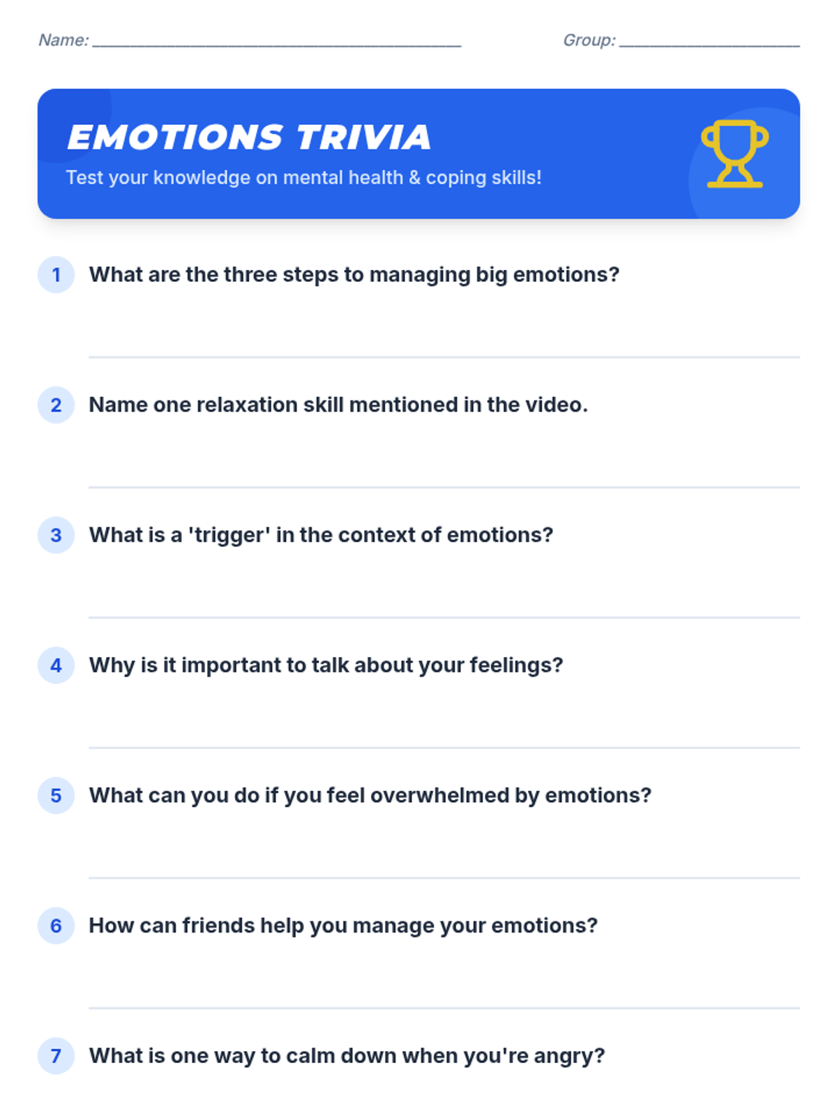 A game-based lesson designed to help middle and high school students explore mental health and social-emotional learning. Through a video, trivia, and interactive activities, students develop emotional awareness and essential coping strategies.