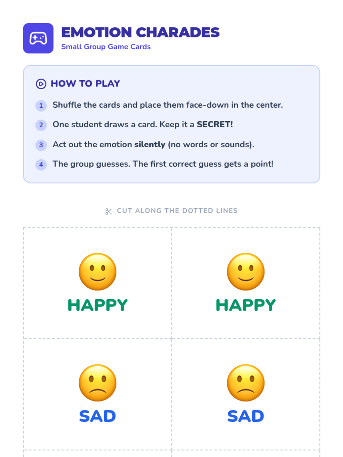 Students become Emotion Detectives to identify and name core emotions by looking for facial and body clues. This K-3 lesson focuses on happy, sad, angry, scared, surprised, and disgusted.